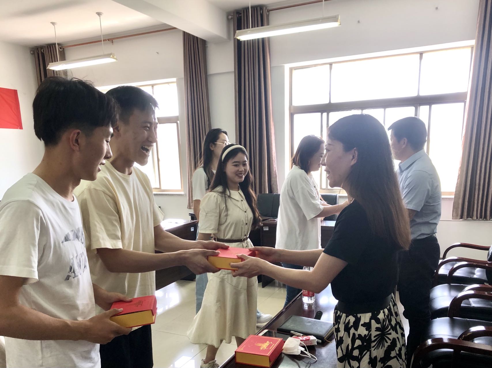 雷兴明表示,学院会详细记录大家提出的意见建议,认真思考如何更好地服务于学生,全面提升人才培养质量。临别之际,他希望全体毕业生在步入社会时,能走好第一步,凭借智慧,系好今后工作生活的第一粒扣子;同时,祝愿毕业生今后取得长足的发展,努力成为出类拔萃的优秀人才。最后,学院领导、老师为参会的毕业生颁发毕业纪念品。