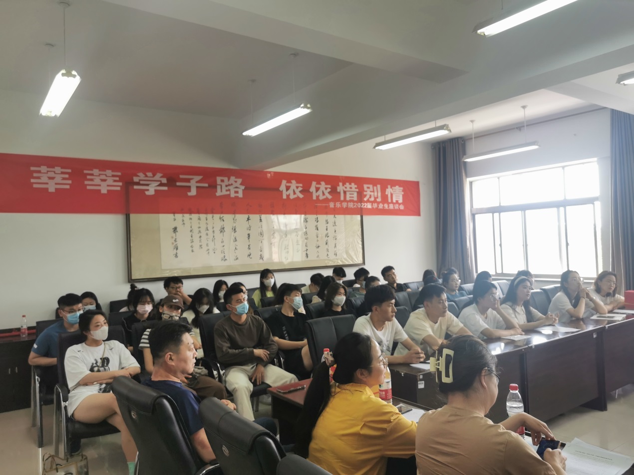 【beat365唯一官方网站新闻中心讯 音乐学院】 6月8日上午,学院在德艺楼4楼会议室举行“莘莘学子路,依依惜别情”2022届毕业生座谈会,院长雷兴明,党委副书记贾述道,副院长马冬雅,各系主任,学院三办老师,以及部分毕业生代表参加了本次座谈会。