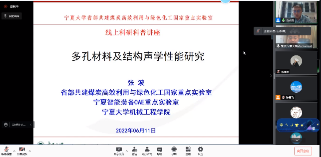 张波教授聚焦多孔材料声传播理论与吸声模型以及轻质多孔金属材料及结构多功能化研究两部分,结合自己访学经历和研究领域,通过多孔材料的吸声机理及制备方法,为大家带来了一场关于多孔材料声学性能研究的科普讲座。