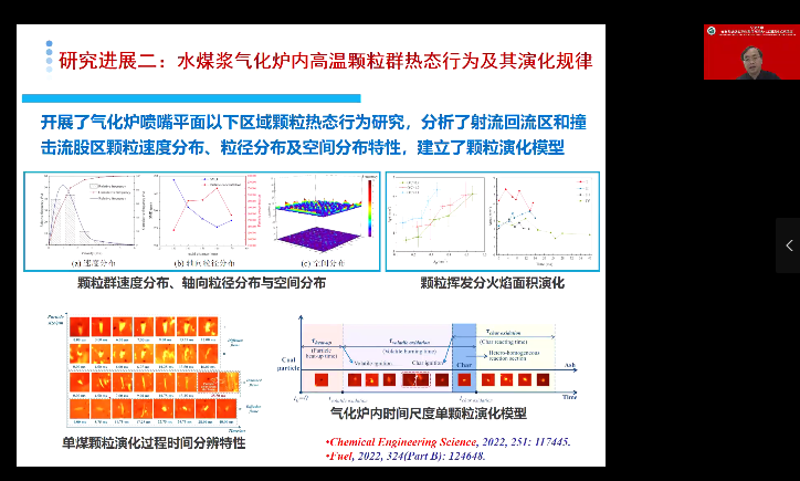 报告中,于广锁老师围绕气流床煤气化技术领域的共性基础科学问题,通过开展气流床水煤浆气化热态行为原位研究,从单视角重建炉内三维火焰结构及三维温度场的数学方法、气流床水煤浆气化高温颗粒演化过程机理、单颗粒焦-灰/渣转变交互作用机制等方面进行了深入讲解。