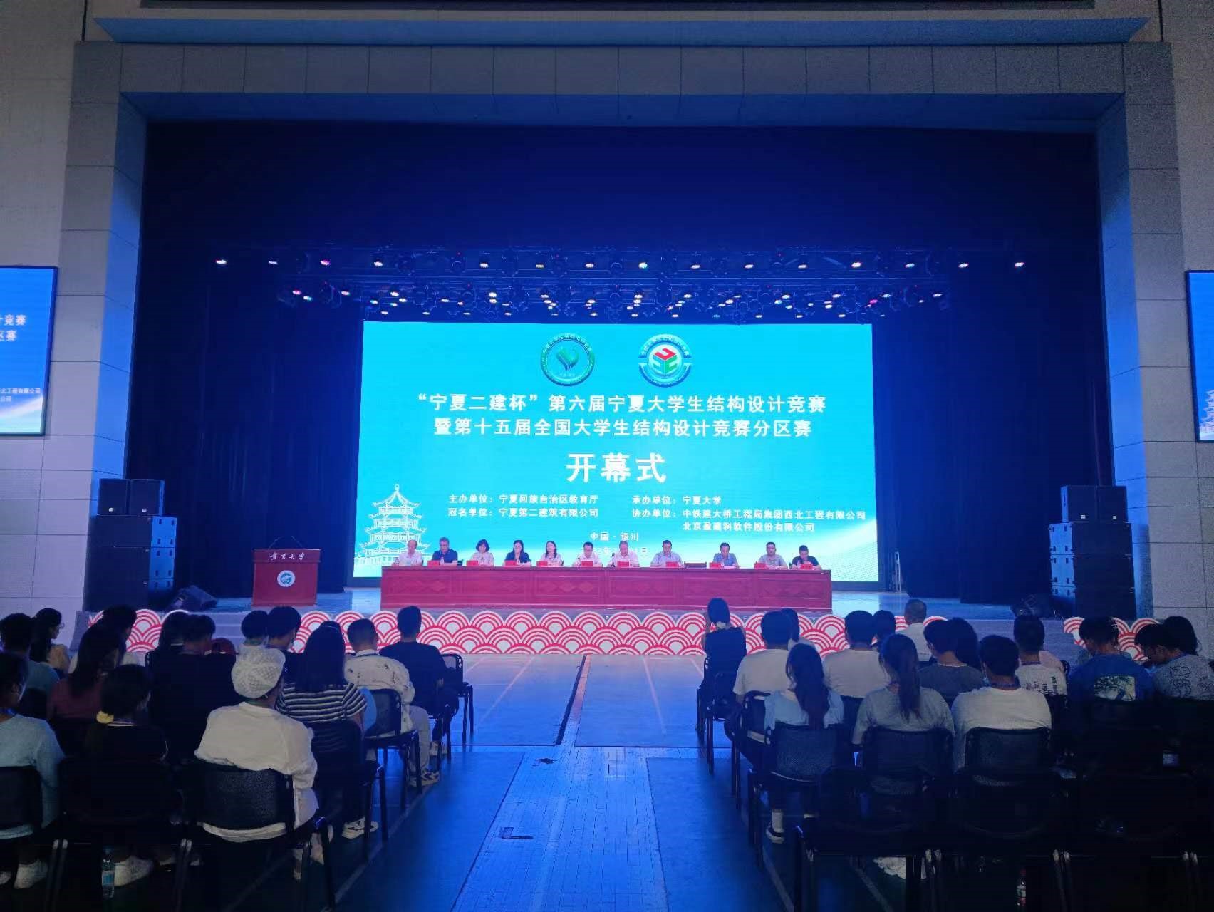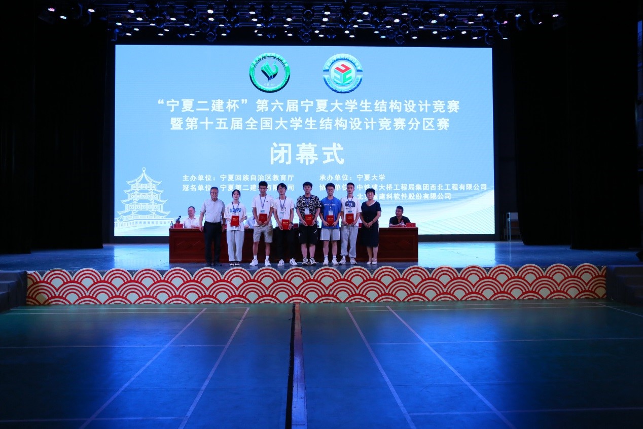 【beat365唯一官方网站新闻中心讯 土木与水利工程学院】7月1日至3日,由宁夏回族自治区教育厅主办,beat365唯一官方网站承办的“宁夏二建杯”第六届beat365唯一官方网站生结构设计竞赛暨第十五届全国大学生结构设计竞赛分区赛在beat365官网大学生活动中心举办。自治区教育厅高教处副处长刘思远,宁夏第二建筑工程有限公司总经理付志英出席开幕式,宁夏建设职业技术学院、银川能源学院土木建筑学院、北方民族大学土木工程学院、银川科技学院信息工程学院和beat365官网创新创业学院、中铁建大桥工程局集团西北工程有限公司、北京盈建科软件股份有限公司、土木与水利工程学院相关负责人参加开幕式。