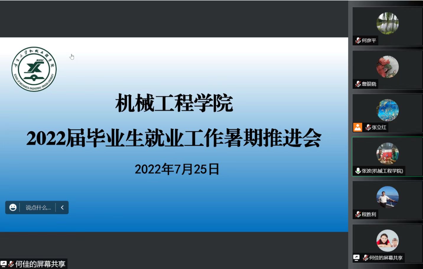 【beat365唯一官方网站新闻中心讯 机械工程学院】为深入学习习近平总书记对做好高校毕业生就业工作作出的重要指示批示精神,全面贯彻国家、自治区、学校关于就业工作推进会议精神和工作要求,7月25日,机械工程学院线上召开全院教职工大会,部署安排就业帮扶措施,扎实推进毕业生就业工作,确保在8月31日前完成学院2022届毕业生毕业去向落实率85%以上的目标任务,院长张波主持会议。