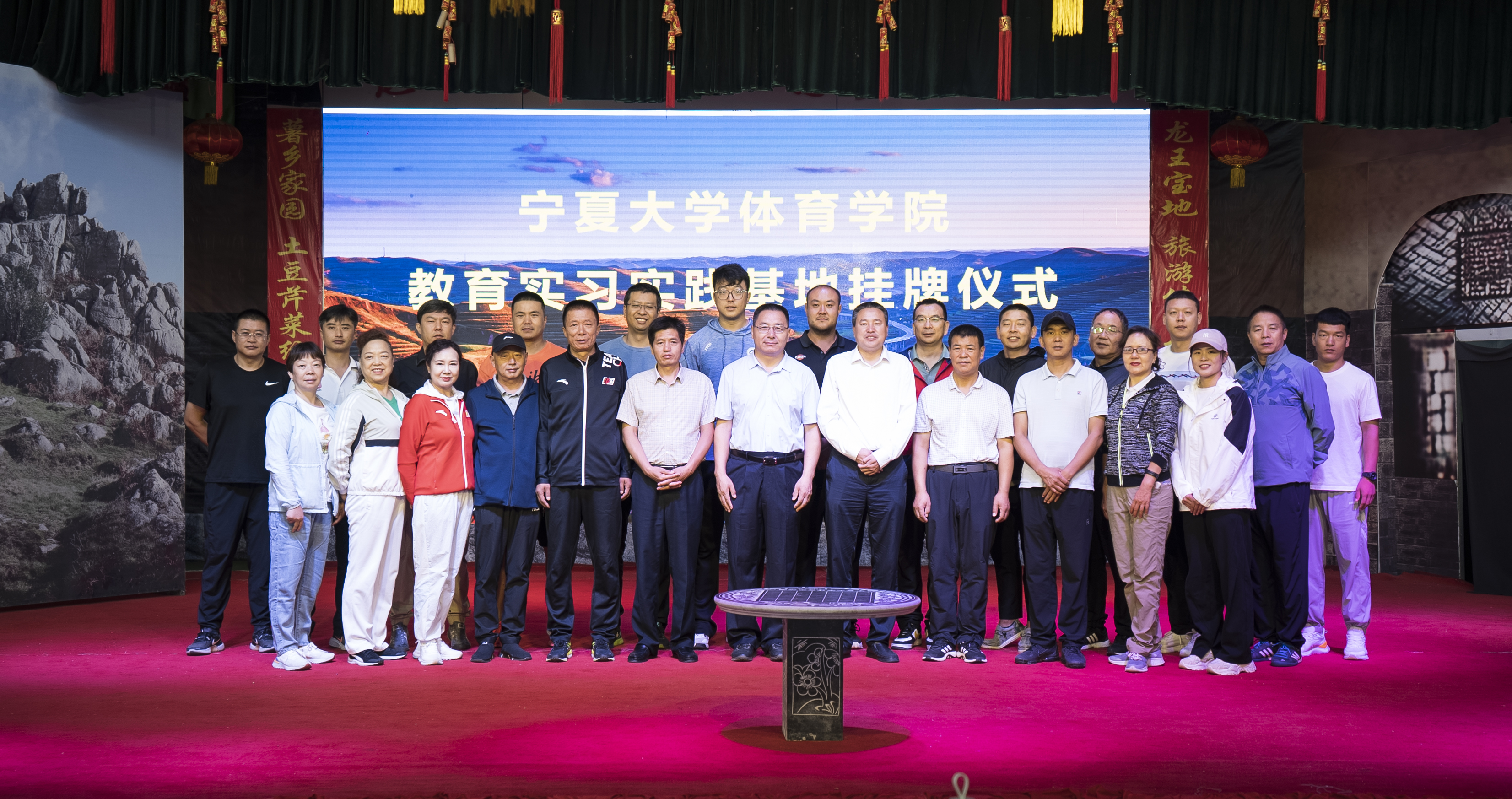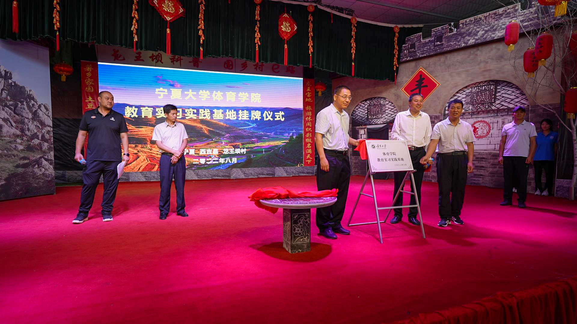 体育学院党委副书记、院长咸云龙,宁夏龙王坝乡村振兴学院院长焦建鹏共同为“beat365唯一官方网站体育学院教育实习实践基地”揭牌。