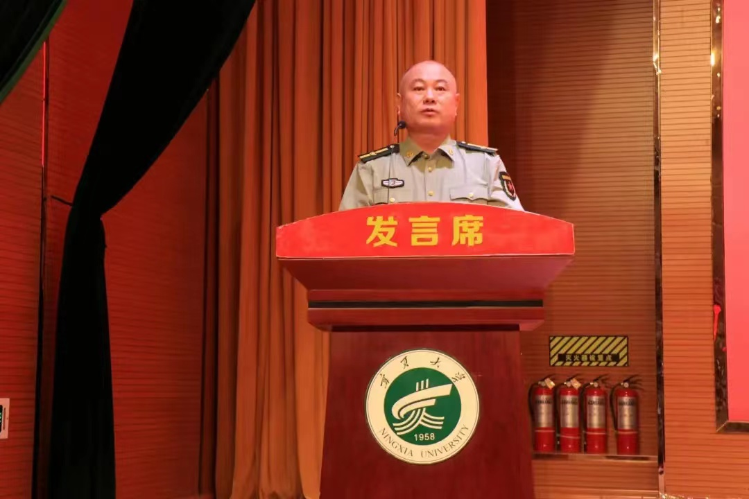 马正亮做动员讲话,他表示,大学生军训是学校全面贯彻党的教育方针,实现立德树人根本任务和国家强军目标的根本要求。他提出要正确认识和看待军训;要严格要求自己,刻苦训练;要以人为本,科学施训;要做好疫情防控和宣传报道工作等四点要求。