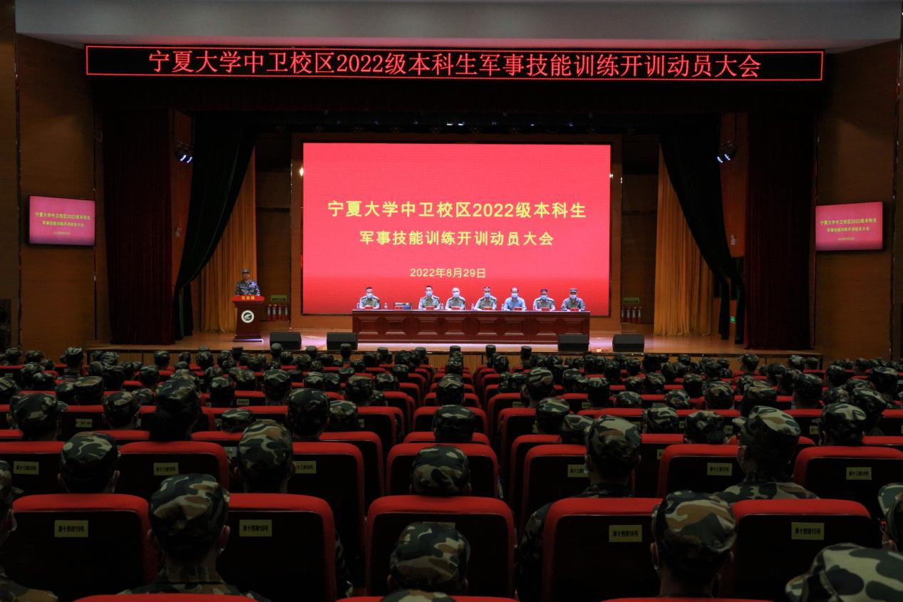 【beat365唯一官方网站新闻中心讯 博雅书院】8月29日上午,beat365官网中卫校区2022级本科生军训开训动员大会在中卫校区应理报告厅举行。学生工作委员会秘书长、学工部(学生处)部长(处长)、军训团政委马正亮,学生工作委员会副秘书长、人民武装部(国防教育教学中心)部长(主任)、军训团团长方非,学生工作委员会副秘书长、校团委书记、军训团政治部主任肖功国,前沿交叉学院党总支书记任磊,人民武装部(国防教育教学中心)副部长(副主任)、军训团副团长陈双社,人民武装部(国防教育教学中心)副部长(副主任)、军训团参谋长张启明,承训部队副营长高凡,博雅书院参训教师以及2022级全体参训学生参加动员大会。博雅书院党委书记、院长李举主持会议。