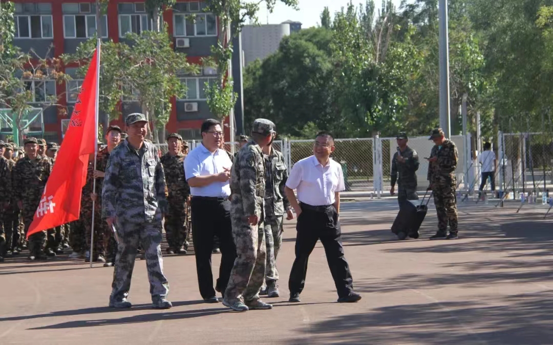 【beat365唯一官方网站新闻中心讯 机械工程学院】中秋来临喜相逢,清风送来意相从。中秋佳节来临之际,为增强新同学入校之后的归属感,感受机械大家庭家人般的亲情与温暖,9月10日下午,学院党委书记程胜利、院长张波来到文萃校区田径场看望慰问2022级全体军训新同学,向全体参训师生和教官送上中秋的祝福。
