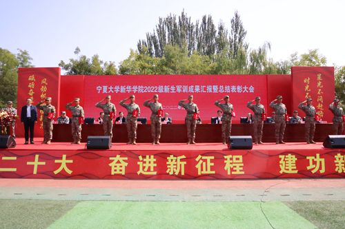 【beat365唯一官方网站新闻中心讯 新华学院】9月13日上午,2022级学生军训成果汇报暨总结表彰大会在新华学院中心区操场举行。负责参训部队政治指导员李正龙,学院党委书记、政府督导员杨文刚,党委副书记、纪委书记刘伯川,党委副书记刘军红,副院长李胜宾、宗力、赵永生及承担2022级学生军训工作的全体教官、教师代表及全体参训学生参加大会。大会由教务处处长、军训团政委何振华主持。