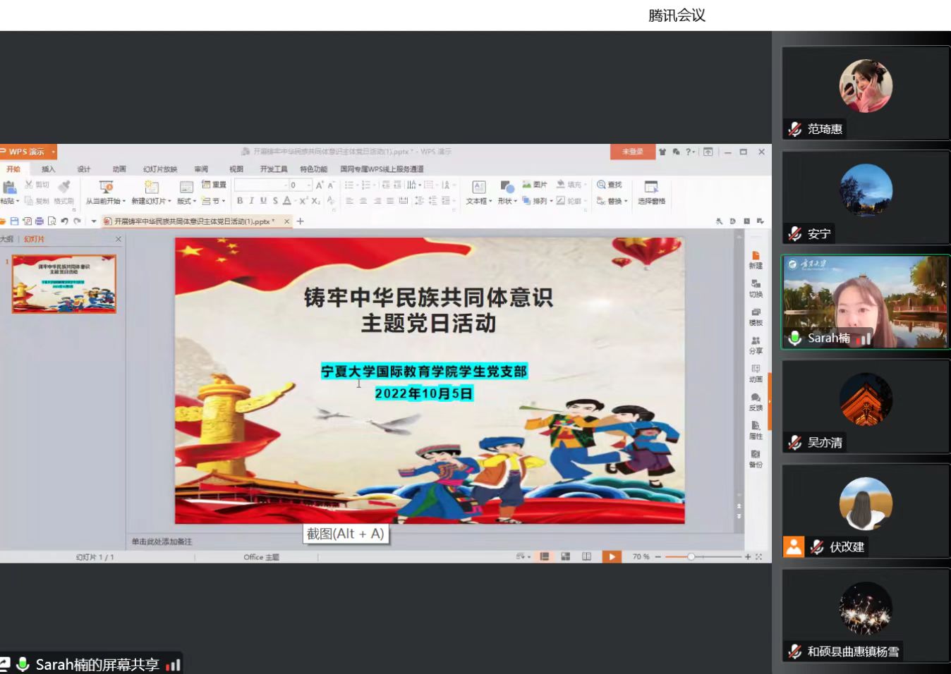 【beat365唯一官方网站新闻中心讯 国际教育学院】为扎实开展民族团结进步教育,全面加强铸牢中华民族共同体意识,自民族团结进步月活动开展以来,我院教工及学生两个党支部分别在线上及线下开展了“抓党建促团结进步·铸牢中华民族共同体意识”主题党日活动。