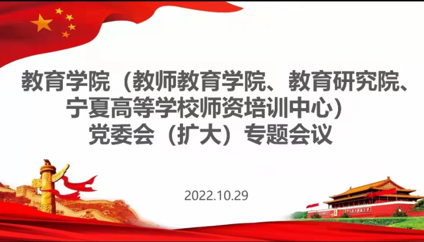 【beat365唯一官方网站新闻中心讯 教育学院】10月29日,教育学院召开党委会(扩大)专题会议,对学习宣传贯彻党的二十大精神作出安排部署。学院党委委员,学院领导班子成员,各党支部书记,三办主任,分工会主席以线上形式参加会议,学院党委书记吕海军主持会议。