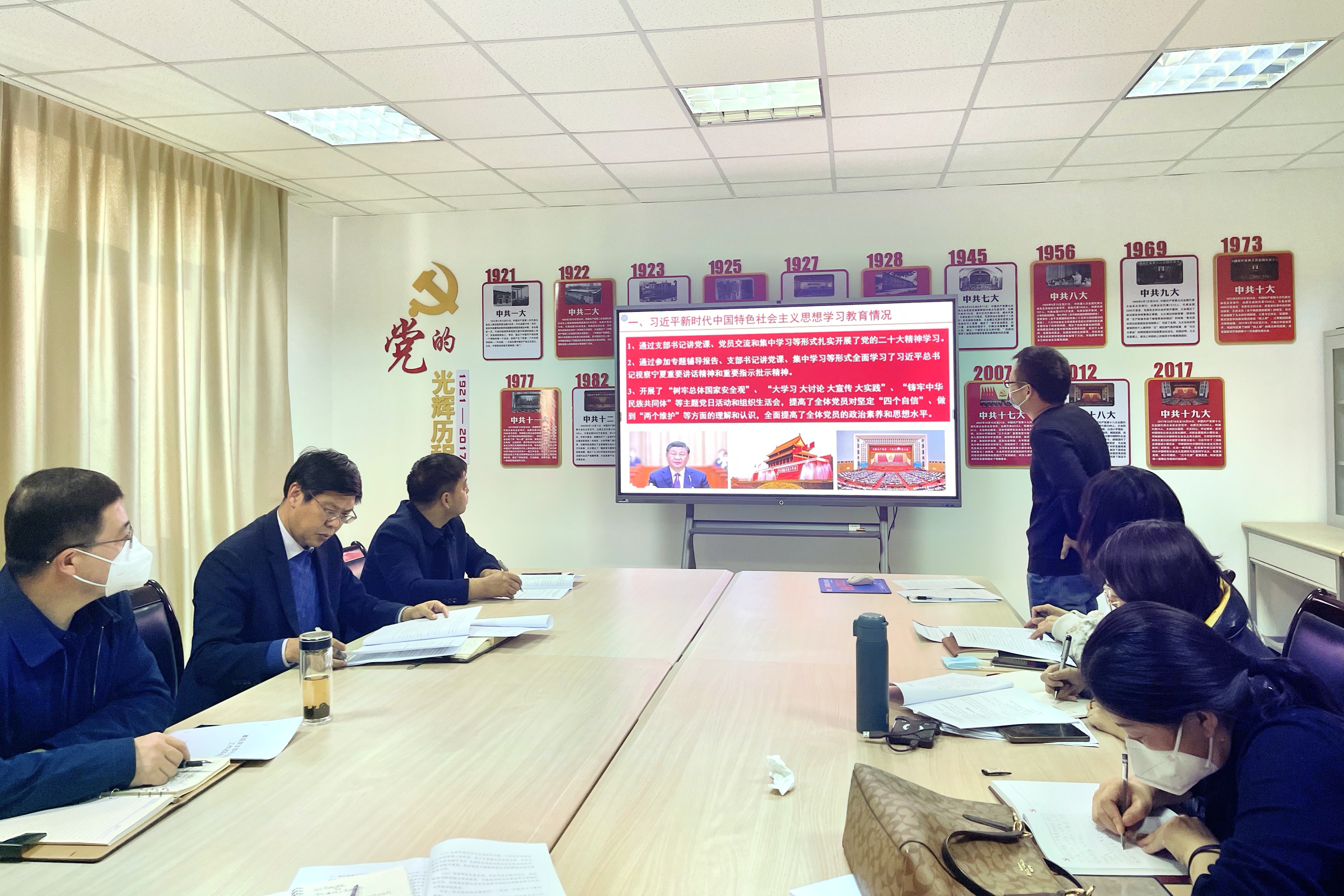 【beat365唯一官方网站新闻中心讯 地理科学与规划学院】 为深入贯彻落实校党委关于基层党支部规范化标准化建设工作要求,进一步提升党支部建设标准化水平,推动基层党建全面进步、全面过硬。12月14日,地理科学与规划学院党委开展支部建设“互查、互评、互学、互促”活动,对学院所属各党支部的党建工作进行了从严、从细、从实的互查、互评,达到了从“面”上掌握党建整体情况,从“点”上发现问题的目的,有效激活了各基层党组织的“神经末梢”。党委书记陈军胜主持会议,党委副书记、院长刘小鹏,副书记李应海参加会议。