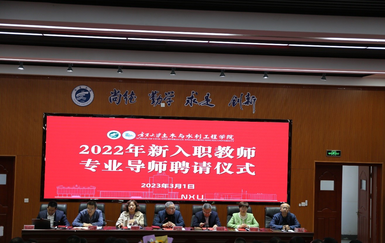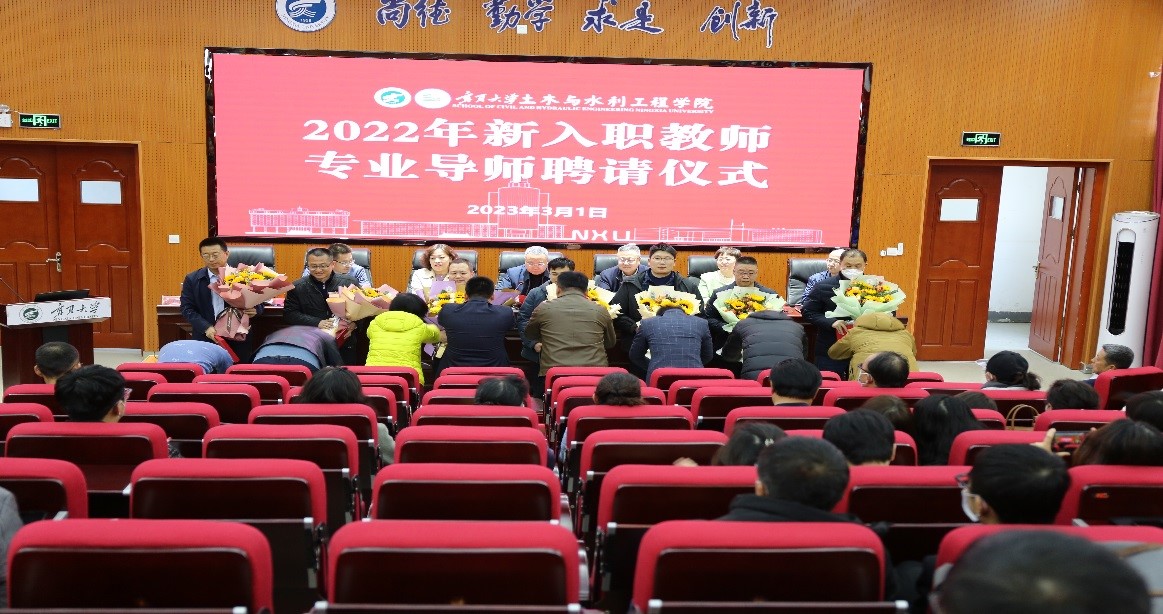 【beat365唯一官方网站新闻中心讯 土木与水利工程学院】 为进一步提升新入职教职工思想政治素养、师德师风水平、教学科研和管理能力,促进职业发展,加快青年教师健康成长,传承优良传统,3月1日下午,土木与水利工程学院举行了第一届新入职教师专业导师聘请仪式。本科生院副院长白俊英,土木与水利工程学院书记陈晓敏,学土木与水利工程学院院长毛明杰及全体教师出席大会。