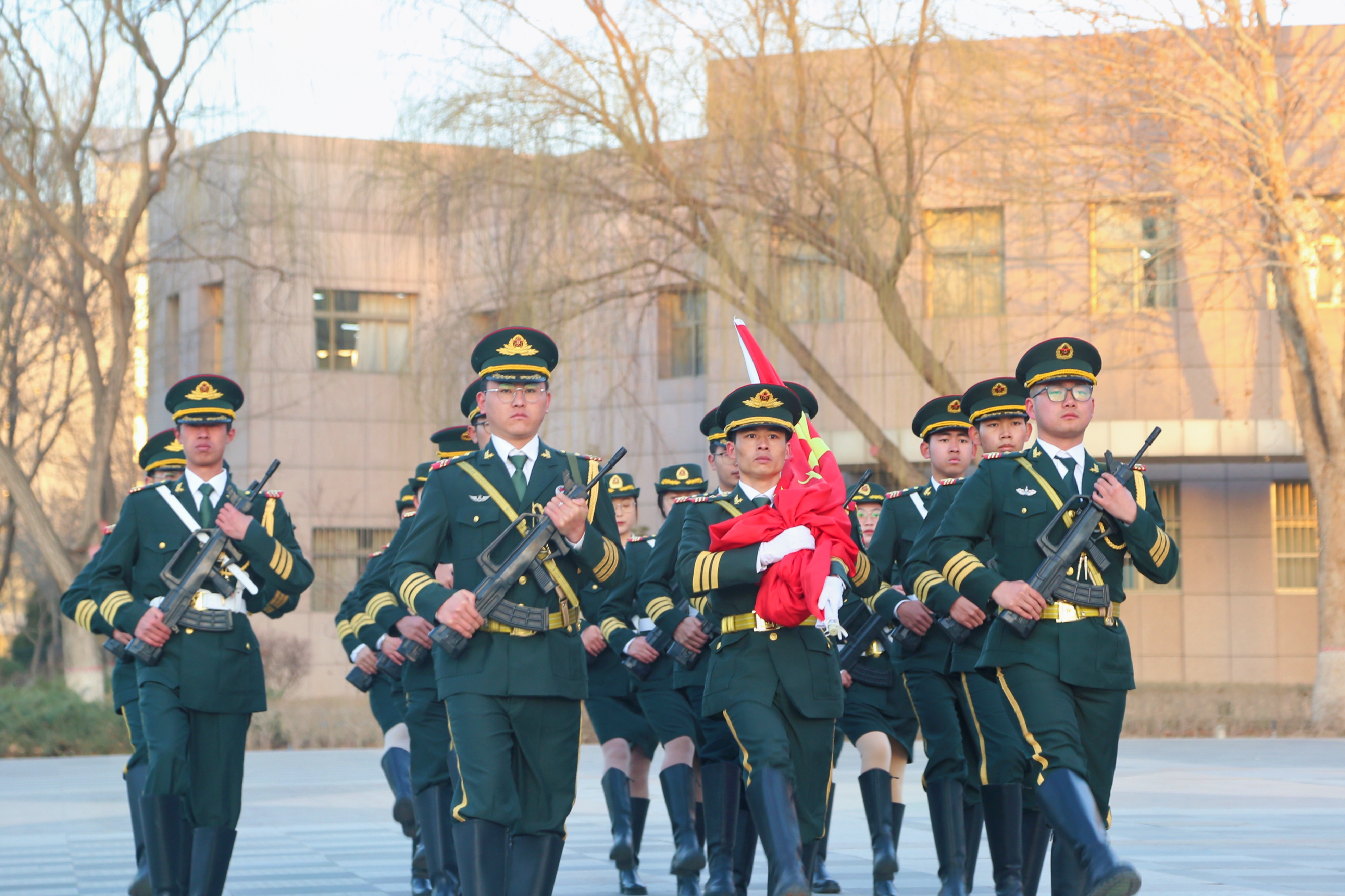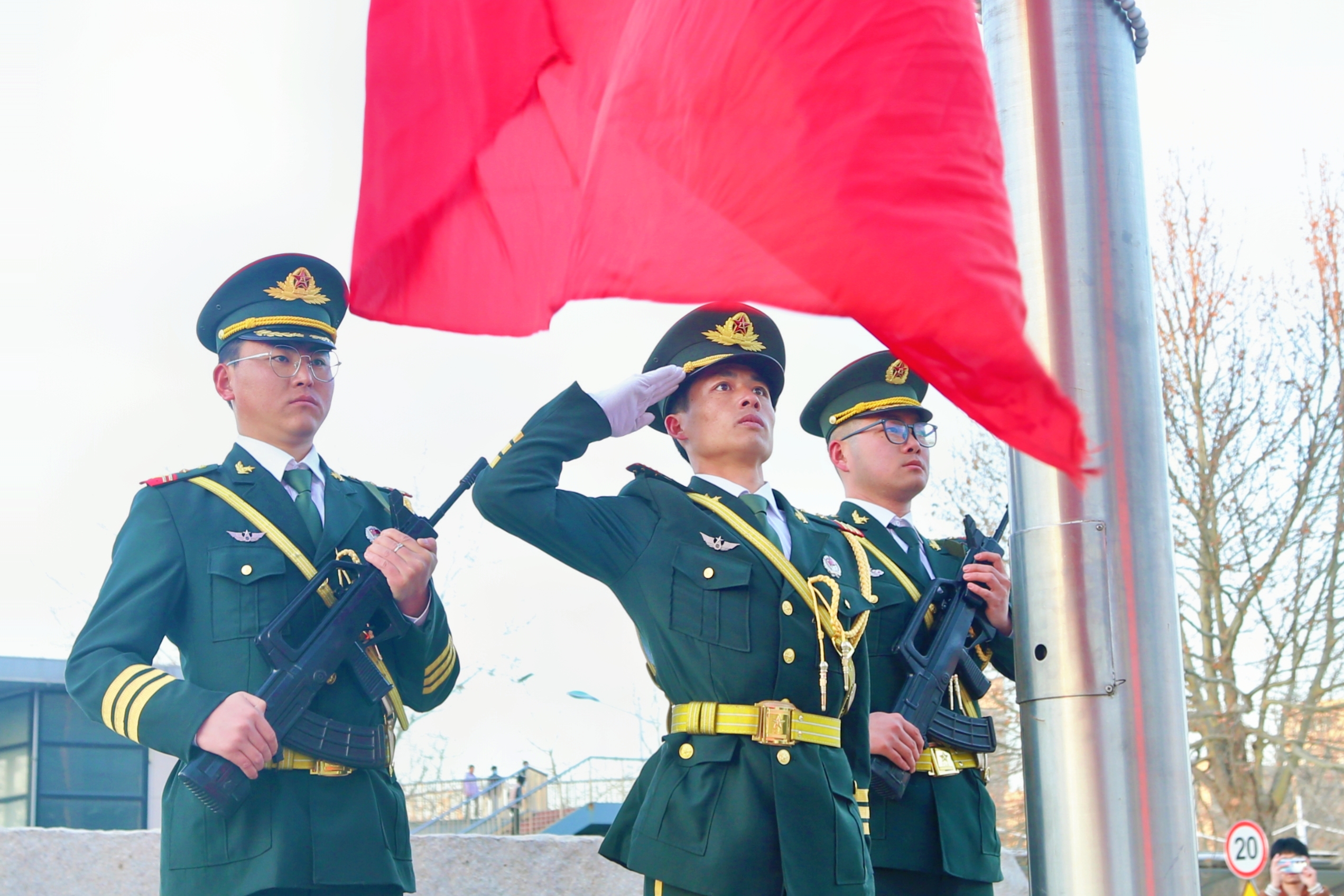 迎着清风,沐着朝阳,升国旗仪式正式开始。国旗护卫队迈着整齐划一的步伐,在铿锵有力的脚步声中护送五星红旗走向升旗台。高挥铁臂旗升起,一曲国歌声律扬,伴着雄壮的国歌,在师生的庄严注目下,五星红旗迎着朝霞冉冉升起,在晨光中迎风飘扬。