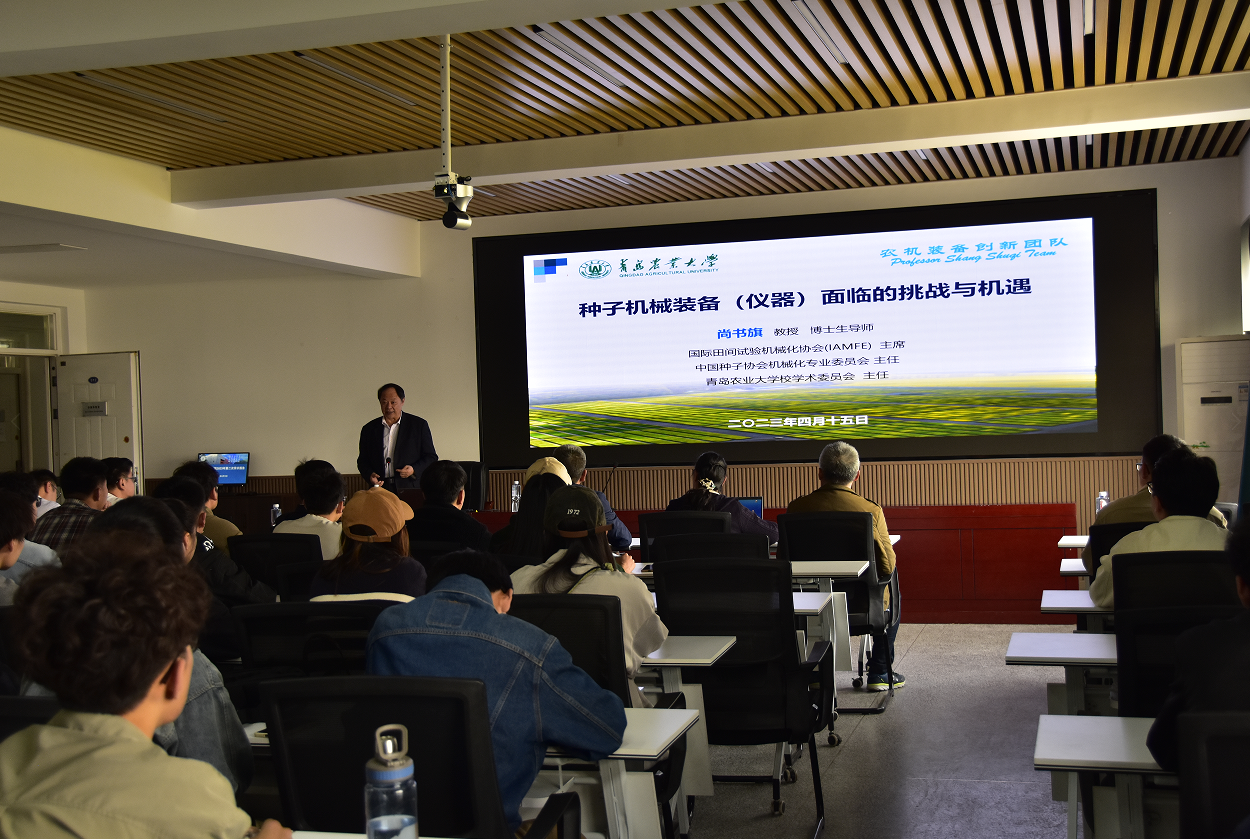 【beat365唯一官方网站新闻中心讯 机械工程学院】4月15日,我院邀请青岛农业大学博士生导师、国际田间试验机械化协会主席尚书旗教授,在文萃校区明远楼512报告厅举办“种子机械装备(仪器)面临的挑战和机遇”学术报告会,青岛农业大学机电工程学院院长王东伟出席,会议由学院副院长王昱潭主持。