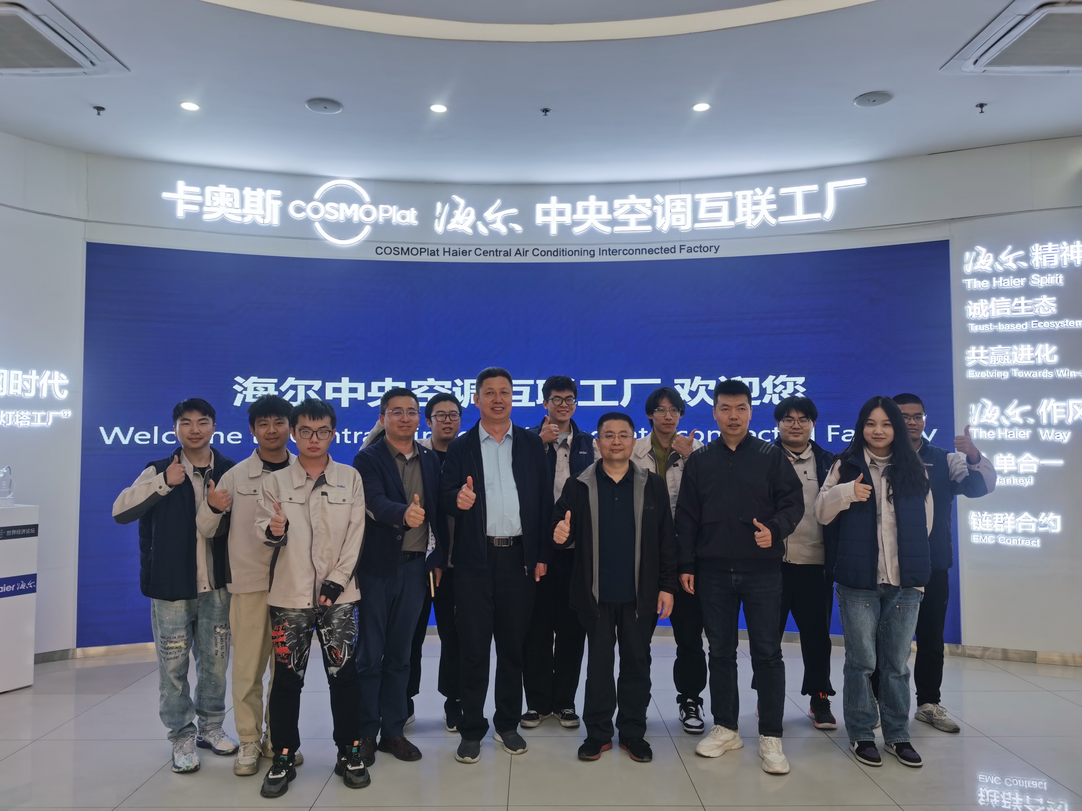 师生在海尔中央空调互联工厂合影留念