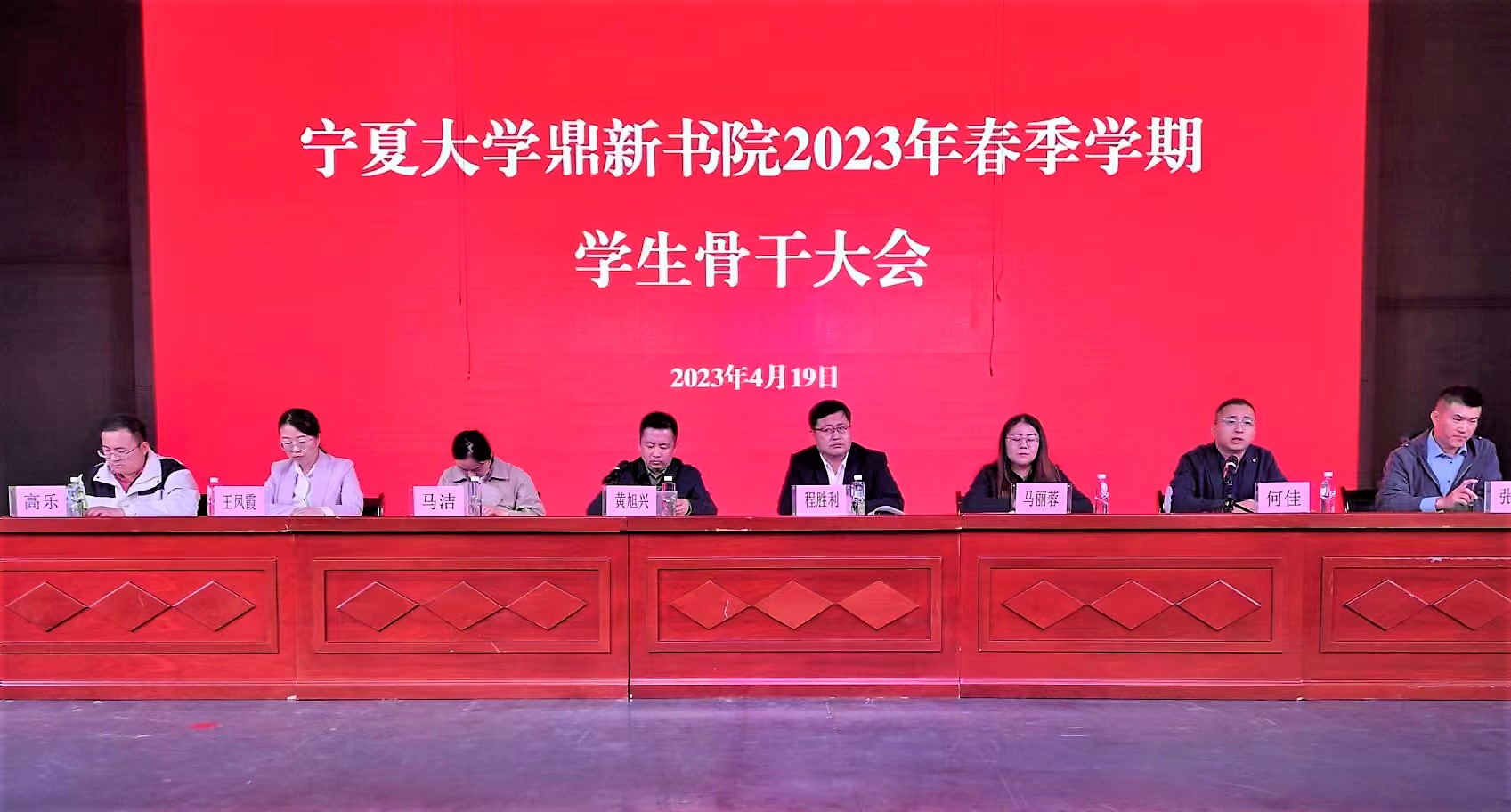 【beat365唯一官方网站新闻中心讯 鼎新书院】4月19日下午,鼎新书院于文萃校区大学生活动中心成功举行2023年春季学生骨干大会。书院党委书记、院长程胜利,党委副书记马丽蓉,辅导员何佳、马洁、张凯、王凤霞、高乐及书院全体发展对象、入党积极分子、团学骨干、各寝室长参加此次会议。会议由黄旭兴主持。
