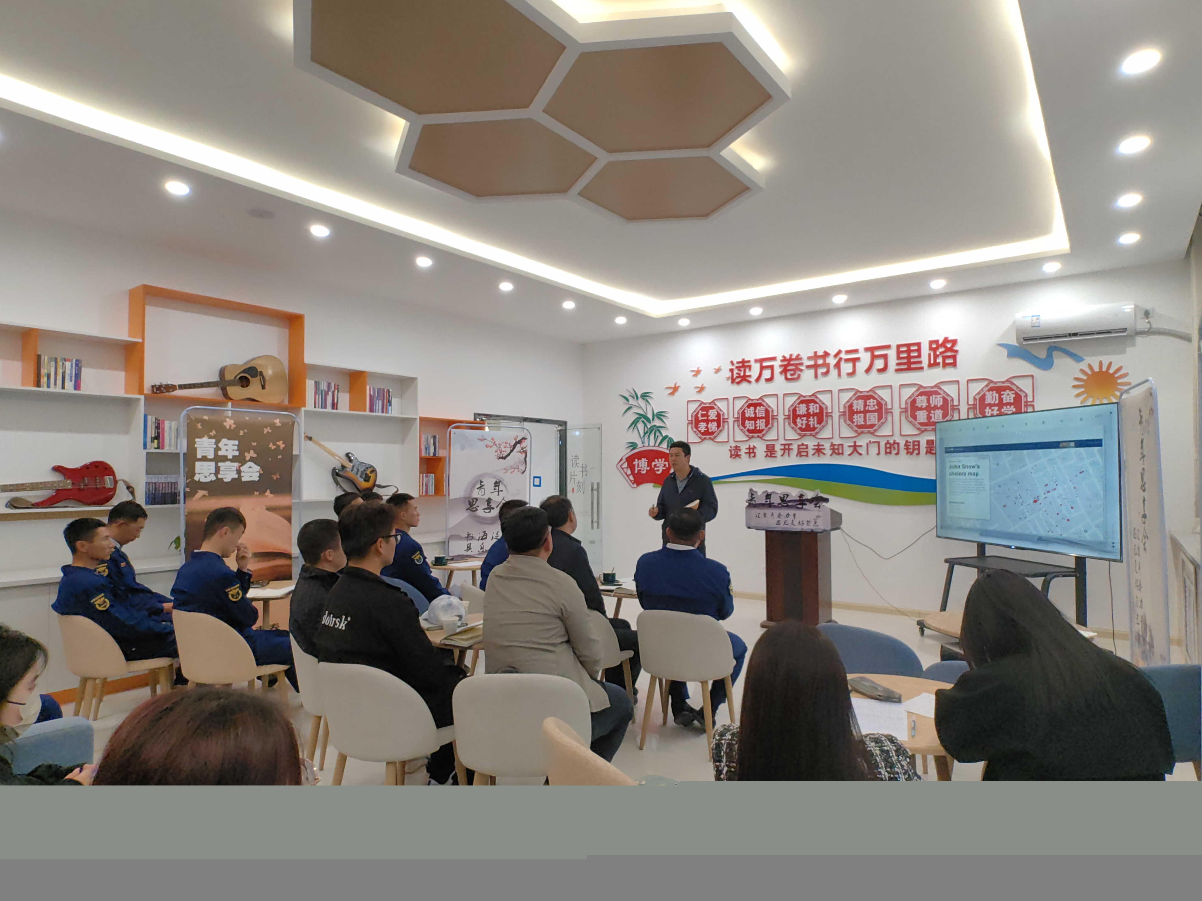 【beat365唯一官方网站新闻中心讯 前沿交叉学院】为迎接第二十八个“世界读书日”的到来,4月19日晚上,前沿交叉学院与宁夏消防中卫消防支队联合开展以“青年思享会”为主题的读书分享会,本期分享会由学院杨红喜老师主讲,刘玉奇老师主持。学院党总支书记任磊、中卫市消防支队副政治委员刘小康、中卫市消防支队政治部主任岳光福及学院教师、消防官兵、学生30余人参加了本次分享会,分享会在中卫市消防支队圆满举行。