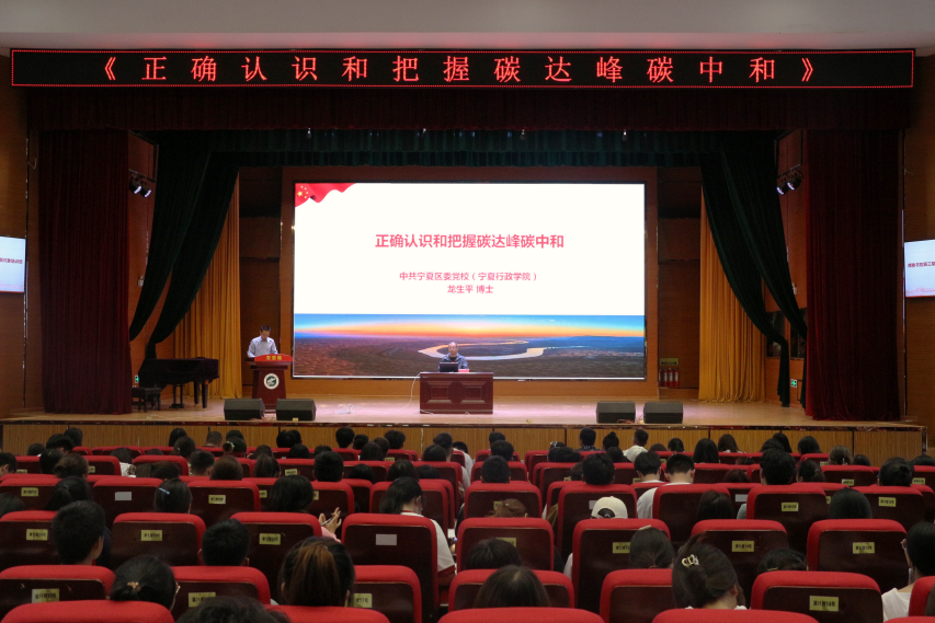 龙生平教授以专业的知识、通俗的语言及具体的案例,就如何正确认识和把握碳达峰碳中和从“相关知识”“现实回应”“贯彻落实”三方面进行讲解。他从碳达峰碳中和的概念、背景、目标、意义和路径等方面系统阐述了相关专业知识;从实现双碳目标的几个关键领域、运动式减碳的表现和原因、双碳治理现代化的逻辑要求、双碳对标与产业应对四个方面讲解了全国、宁夏各部门企业对“双碳”计划的现实回应;就正确认识和把握碳达峰碳中和问题,根据“五要”要求解析了具体贯彻落实举措。