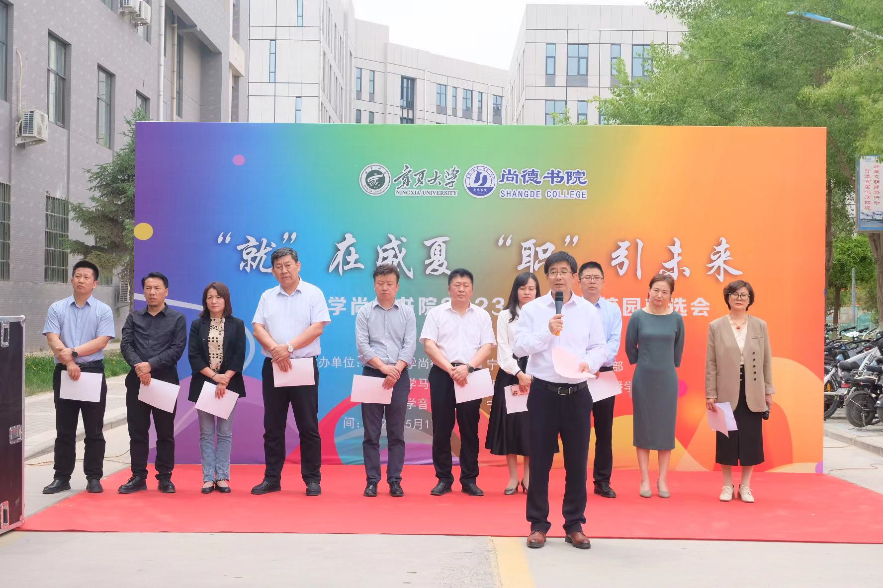 【beat365唯一官方网站新闻讯 尚德书院】5月17日下午,由尚德书院主办的“‘就’在盛夏,‘职’引未来”2023届毕业生校园双选会在贺兰山校区举行,尚德书院党委书记潘瑞主持了开幕式。