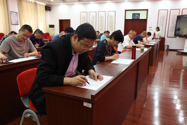 讲座结束后,学院领导及中层干部进行主题教育应知应会测试,本次测试既是对全体干部近期学习效果的检验,也是对学习成果的巩固提升。