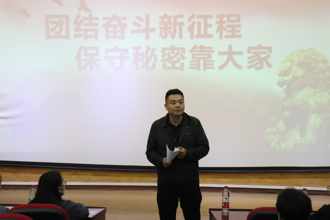 江伟在开场致辞中向同学们讲解了保密的基本常识,从不同层面阐释了保密工作的重大意义,他指出:“保密无小事,言行莫大意”,希望同学们成为守护国家秘密的践行者、监督者、引导者。