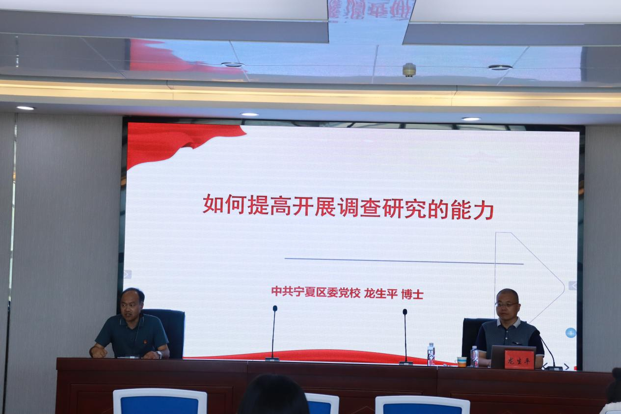 【beat365唯一官方网站新闻中心讯 前沿交叉学院】6月7日下午,中共宁夏区委党校决策咨询部副教授、中共中卫市委党校副校长龙生平应邀在我院惟实楼4楼多功能厅作题为“如何提高开展调查研究的能力”主题教育专题辅导报告,学院党总支书记任磊主持报告会。