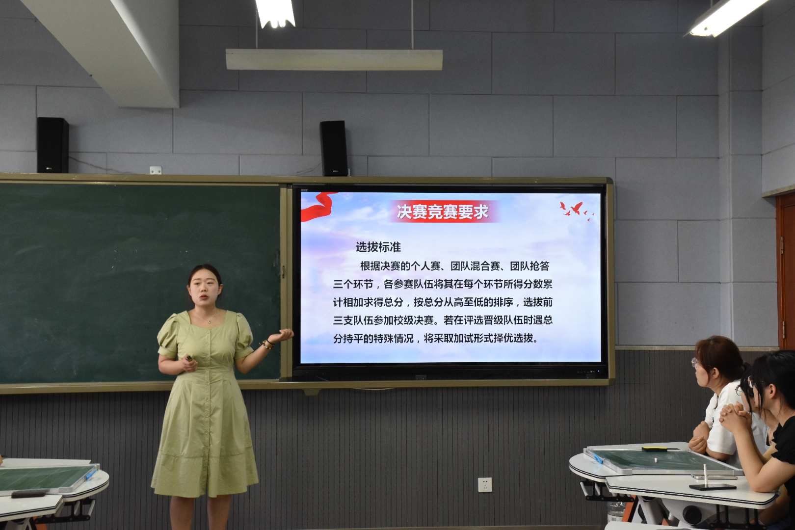 比赛现场共有来自马克思主义学院、新闻传播学院、音乐学院、美术学院的11支队伍、33名同学参赛。初赛内容丰富,涵盖了《中国共产党章程》、党的二十大报告、习近平总书记系列重要讲话等内容;决赛形式多样,设置了单人赛、混合赛、抢答赛三个环节。参赛选手准备充分,踊跃答题,现场气氛热烈。经过初赛和决赛的激烈比拼,最终有3支队伍脱颖而出、成功晋级校赛,他们分别是“撸起袖子加油干”队的孙凤坤、马容、黎梅;“实事求是”队的孟涛、李思齐、汪海龙;“梦之队”的王艺诺、徐昭、马瑞。