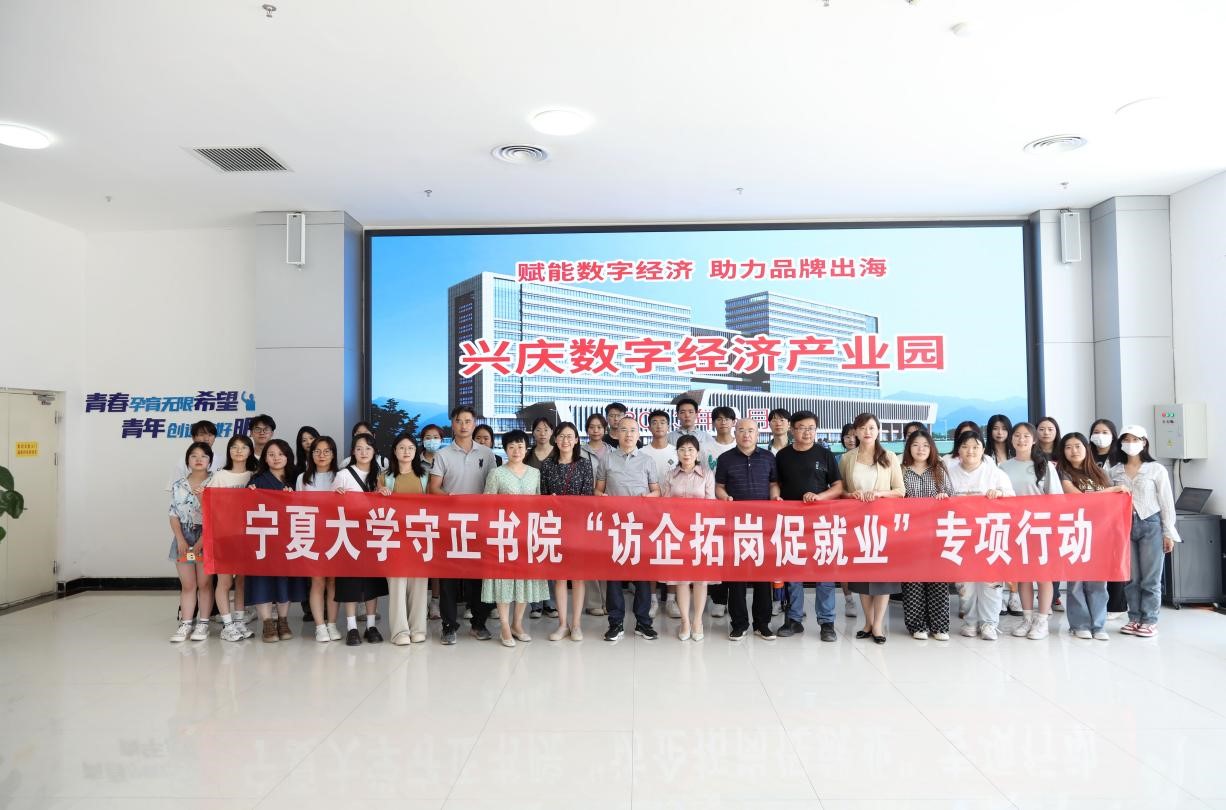 【beat365唯一官方网站新闻中心讯 守正书院】为学习贯彻习近平新时代中国特色社会主义思想主题教育,贯彻落实党中央、国务院关于高校毕业生就业创业工作的决策部署,落实落细beat365唯一官方网站学院书院学部“一体两翼”就业工作机制,积极推进毕业生就业工作,增强就业工作实效,搭建校企交流合作平台,助力“10万大学生留银川”行动,6月15日,beat365唯一官方网站守正书院、人文与民族学部及对应学院联合开展“访企拓岗促就业”专项行动,带领各专业30余名毕业生赴兴庆数字经济产业园调研交流。守正书院党委书记、院长闫蓉,文学院党总支书记王宏武,阿拉伯学院党总支书记冯璐璐,外国语学院党总支书记朱海燕,国际教育学院党总支书记韩勇,民族与历史学院党总支副书记于光建,人文与民族学部副书记白月红,守正书院副院长顾珍,体育学院教师虎晓东参加活动。