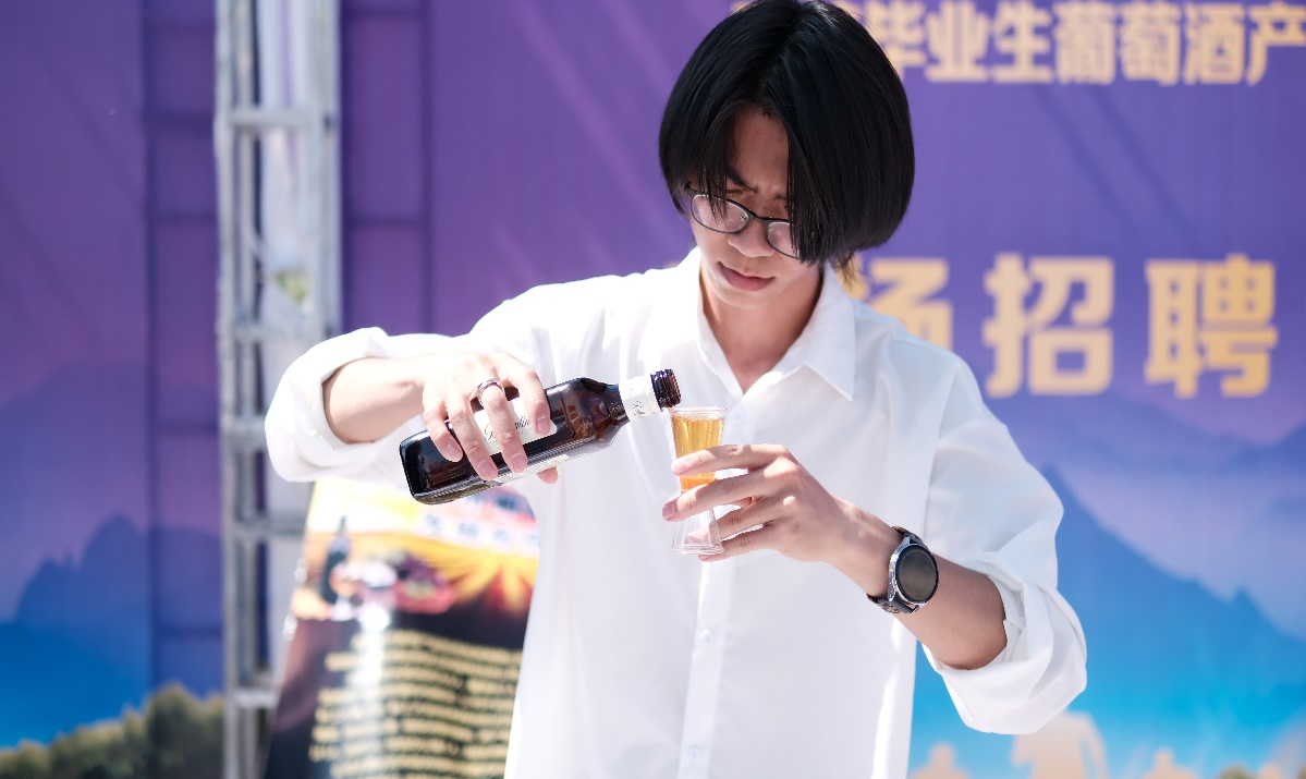 此次招聘会设置了40家葡萄酒企业岗位招聘展位及大学生创新成果作品展示区。招聘会上,企业通过现场葡萄酒品鉴、产品展示等,宣传推介企业发展前景和就业岗位,书院毕业生与企业相互交流沟通,60余名学生投递了简历,80余名学生达成了就业意向。在大学生创新成果作品展位上,书院2020级葡萄与葡萄酒工程(营销方向)班兰一平、2021级葡萄与葡萄酒工程(营销方向)班马鑫月运用专业所学,进行现场调酒展示,吸引了现场领导、工作人员和应聘学生驻足观看和体验。