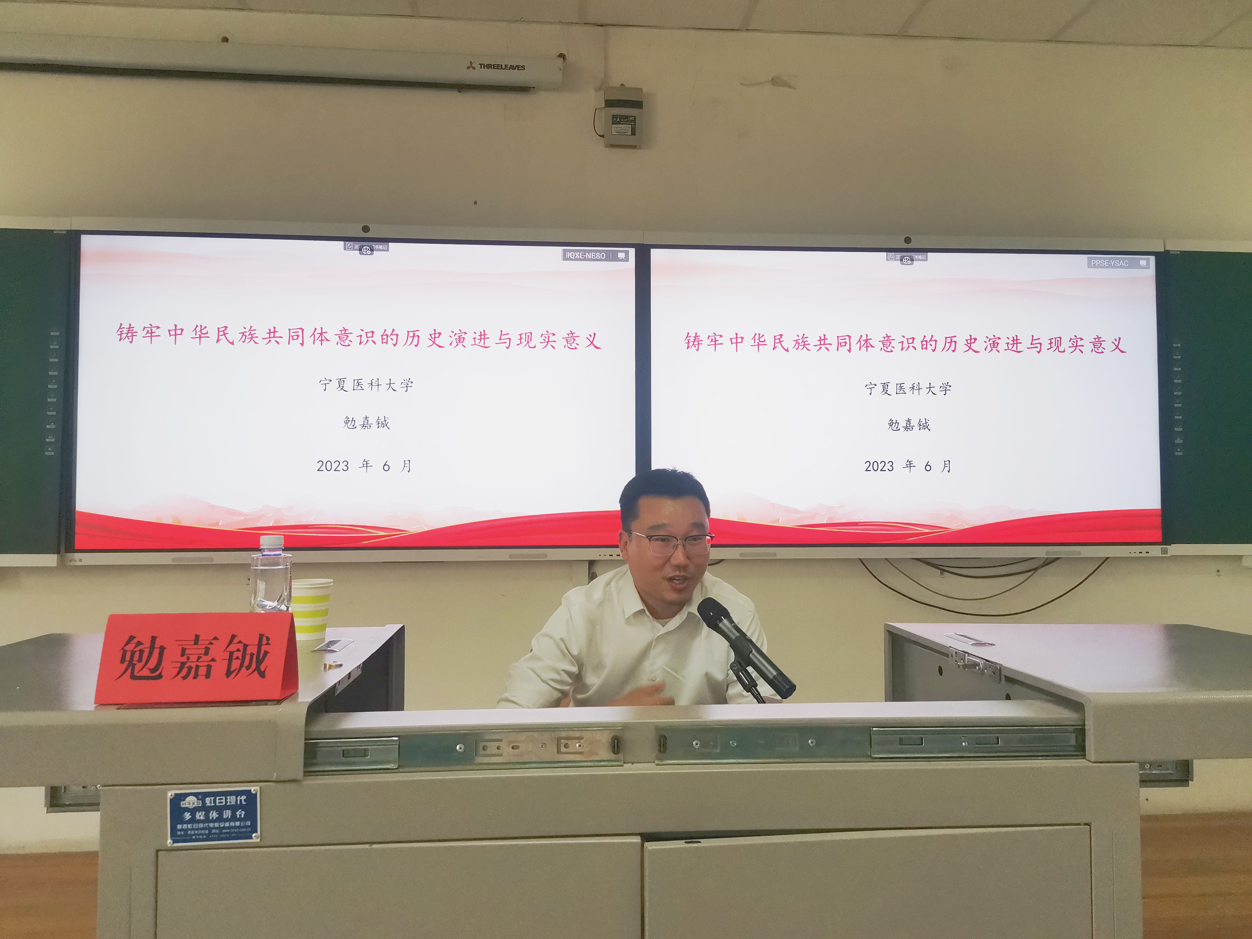 【beat365唯一官方网站新闻中心讯 勤学书院】6月14日,自治区“传承党的百年光辉史基因,铸牢中华民族共同体意识”主题教育宣讲团成员、宁夏医科大学马克思主义学院副教授勉嘉铖受邀在贺兰山校区文荟楼130教室为书院学生党员、发展对象、积极分子作《铸牢中华民族共同体意识的历史演进与现实意义》主题教育专题辅导报告,勤学书院本科生与民哲研究生党支部书记王喆主持报告会。