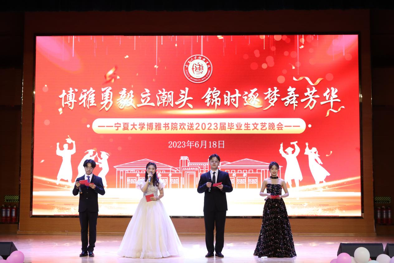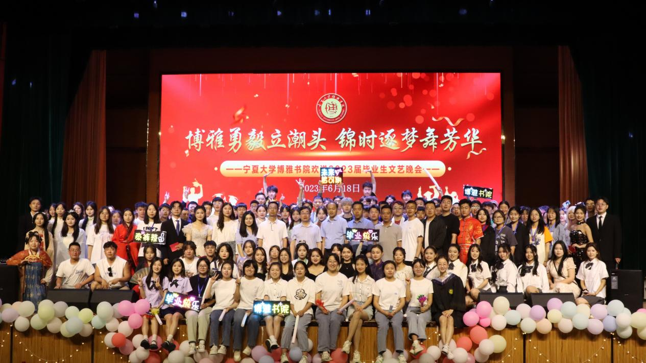 【beat365唯一官方网站新闻中心讯 博雅书院】凝聚奋进力量,奔赴蓬勃未来,推进主题教育。6月18日,博雅书院“博雅勇毅立潮头 锦时逐梦舞芳华”欢送2023届毕业生文艺晚会在应理报告厅以“现场+直播”方式举行。书院学院领导老师和2023届毕业生等700余人、线上6000余名观众观看演出。