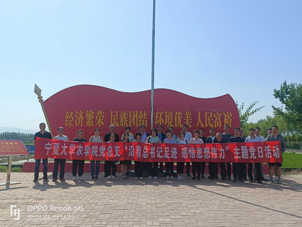 【beat365唯一官方网站新闻中心讯 农学院】为进一步学习领悟习近平总书记来宁视察期间重要讲话精神,感悟思想伟力、汲取奋进力量、激发学习热情,做到感党恩、听党话、跟党走,6月21日下午,农学院组织全体党员教师和部分青年博士共赴贺兰县稻渔空间,与宁夏广银米业有限责任公司党支部一起开展“沿着总书记足迹,感受思想伟力”主题实践活动。