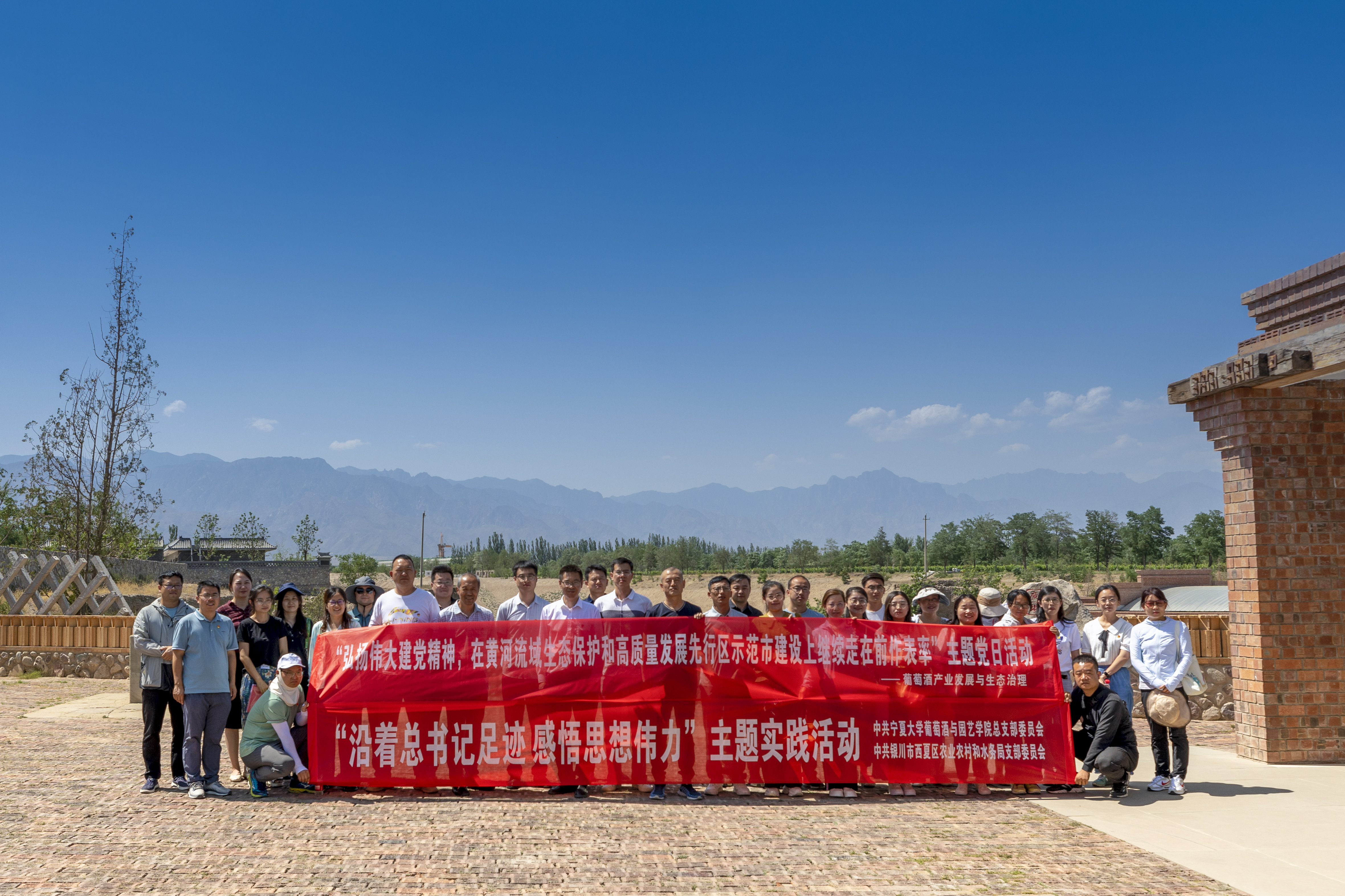 【beat365唯一官方网站新闻中心讯 葡萄酒与园艺学院】6月21日,葡萄酒与园艺学院联合西夏区农水局开展“沿着总书记足迹,感悟思想伟力”主题实践活动和“弘扬伟大建党精神,在黄河流域生态保护和高质量发展先行区示范市建设上继续走在前作表率”主题党日活动,从习近平总书记视察宁夏重要讲话和重要指示批示精神中汲取营养、汲取智慧、汲取力量,扎实推进主题教育走深走实。