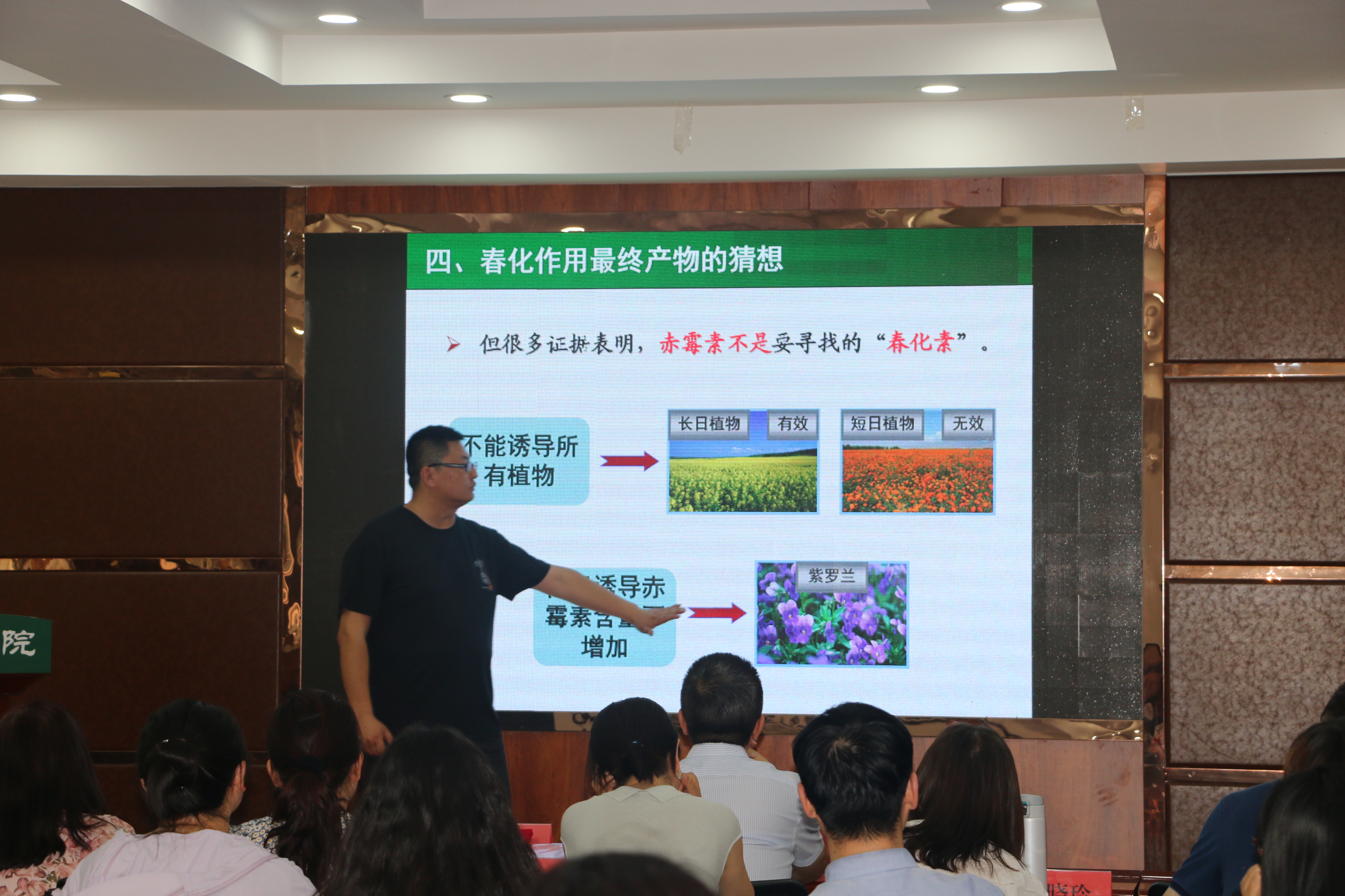 会后,第三届青教赛全国一等奖获得者、农学院王彬教授结合自身参赛经历围绕选定课程节段、教学设计、教学反思、比赛心态等方面为全体教职工做经验分享,并就植物春化作用进行教学示范。大家一致认为,王彬教授的示范课情绪饱满,巧妙运用启发式、案例式教学方法,从课程的导入到课程思政的自然融入,都表现出极高的教师素质。
