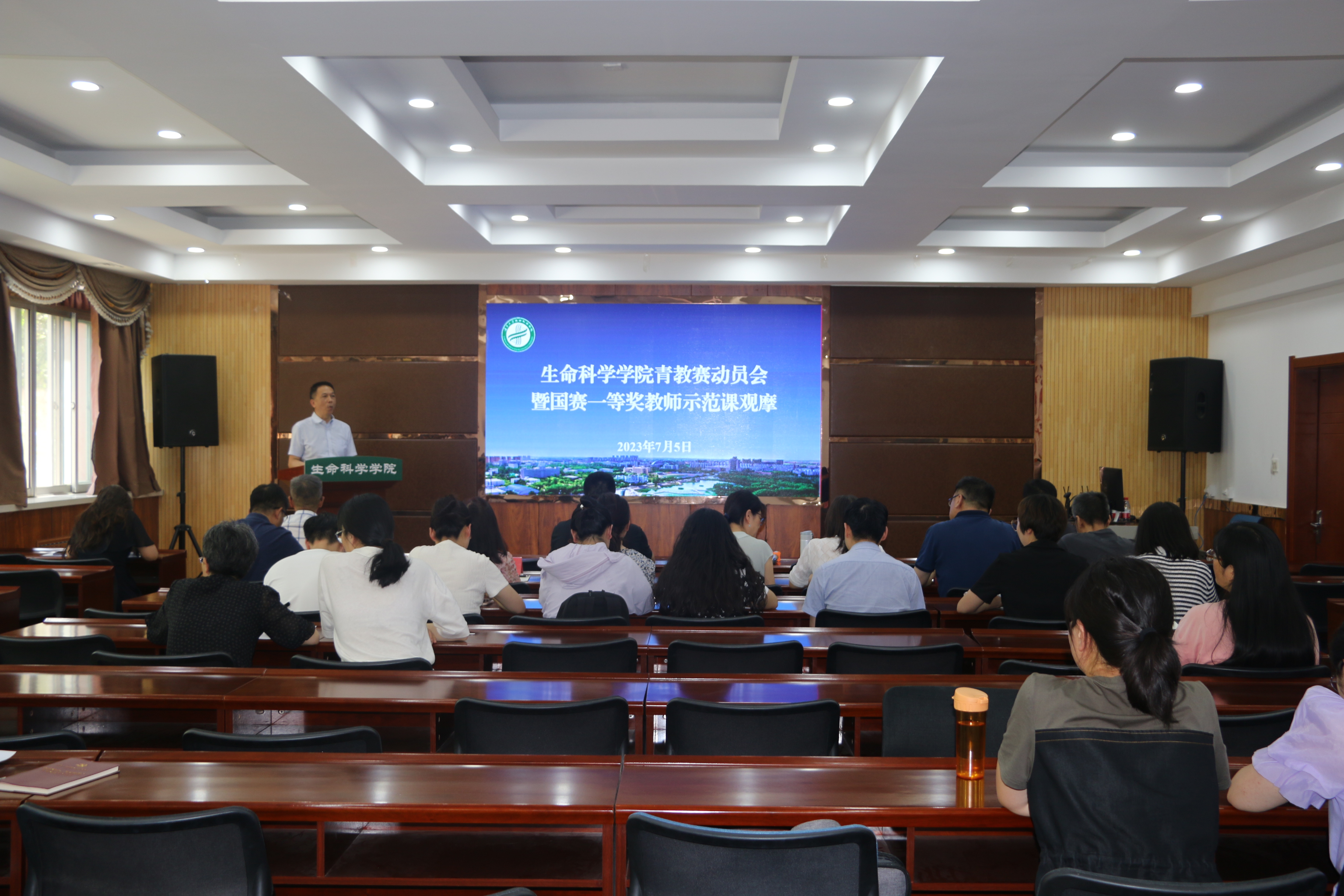 【beat365唯一官方网站新闻中心讯 生命科学学院】为深入学习贯彻党的二十大精神,加强师德师风建设,提升青年教师的教学能力和业务水平,7月5日下午,生命科学学院青教赛动员会暨国赛一等奖教师示范观摩课在知本楼二楼报告厅召开。学院院长苏建宇,副院长李乐出席会议,农学院王彬教授应邀参会,青教赛全体参赛教师及其他专任教师参加会议,会议由苏建宇主持。
