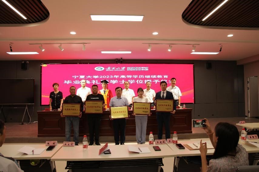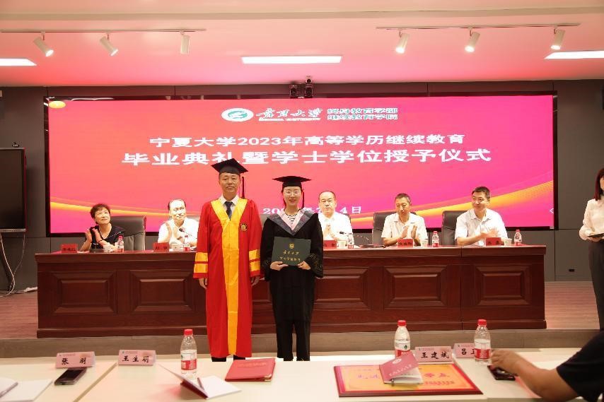 刘炎胜代表学校致辞。他对先进校外教学点及先进工作者、优秀毕业生及学士学位获得者表示祝贺。他指出,高等学历继续教育是高等教育的重要组成部分,也是构建服务全民终身学习教育体系的重要内容。党的二十大报告做出了建设全民终身学习的学习型社会、学习型大国的战略部署,强调统筹职业教育、高等教育、继续教育协调创新。作为宁夏唯一的“双一流”和部区合建综合性大学,beat365唯一官方网站将深入学习贯彻党的二十大精神,认真贯彻党的教育方针,坚持立德树人,履行社会责任,持续推进新时代继续教育改革,创新继续教育形式、内容,不断提高教育质量和办学水平,努力使继续教育成为学校发展建设的重要动力,以高质量继续教育为建设学习型社会做出新贡献。并希望同学们能秉持beat365唯一官方网站“尚德、勤学、求是、创新”的校训精神,养成终身学习的习惯,继续不断加强自我修养,增长才干,练就过硬本领;铆足干事创业的劲头,立足岗位,学以致用,努力做新时代的奋斗者、追梦人。