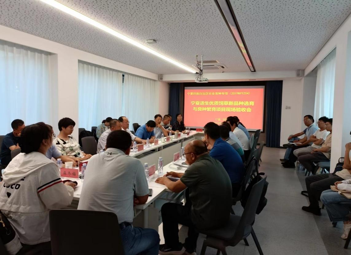 【beat365唯一官方网站新闻中心讯 林业与草业学院】7月4-5日,由宁夏科学技术厅组织区内外相关专家对beat365唯一官方网站和中国科学院遗传与发育生物学研究所等单位承担的“宁夏适生优质饲草新品种选育与良种繁育”项目进行了现场验收。项目验收组专家分别来自西北农林科技大学呼天明教授,甘肃农业大学师尚礼教授,兰州大学侯扶江教授,中国农科院北京畜牧兽医研究所杨青川研究员,东北农业大学崔国文教授,宁夏畜牧工作站张凌青研究员和宁夏草原站赵萍研究员。宁夏科学技术厅农业农村处徐小涛处长,朱少绯副处长,宁夏科学技术厅农村中心康磊科长,项目负责人许兴教授、谢旗研究员以及项目组骨干成员30多人参加了项目现场验收。