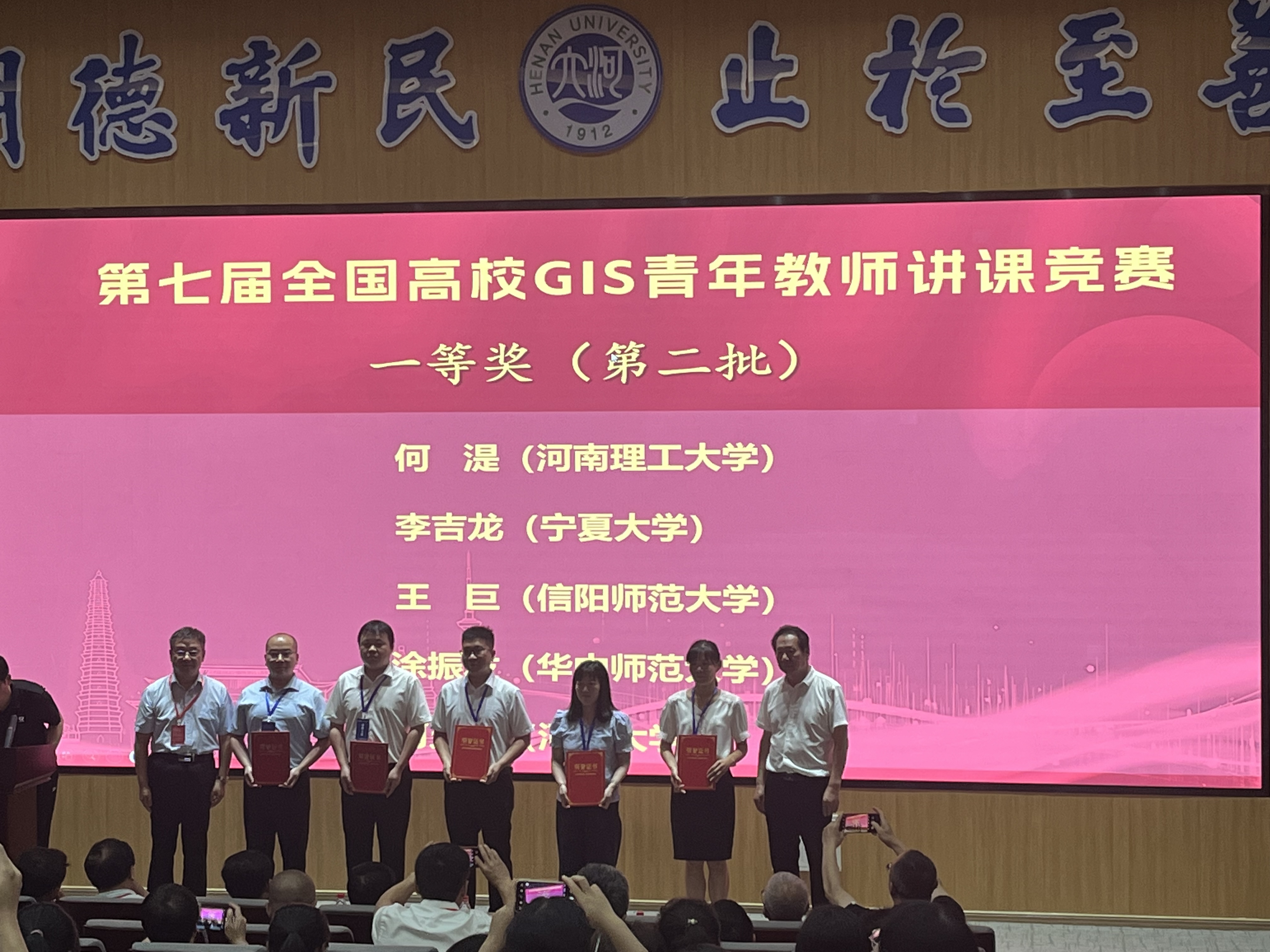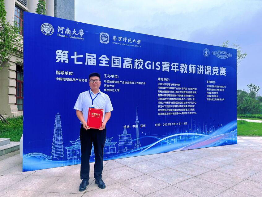 【beat365唯一官方网站新闻中心讯 地理科学与规划学院】7月11-13日,第七届全国高校GIS青年教师讲课竞赛在河南大学(郑州校区)成功举办。我院遥感与地理信息工程系教师李吉龙荣获一等奖。