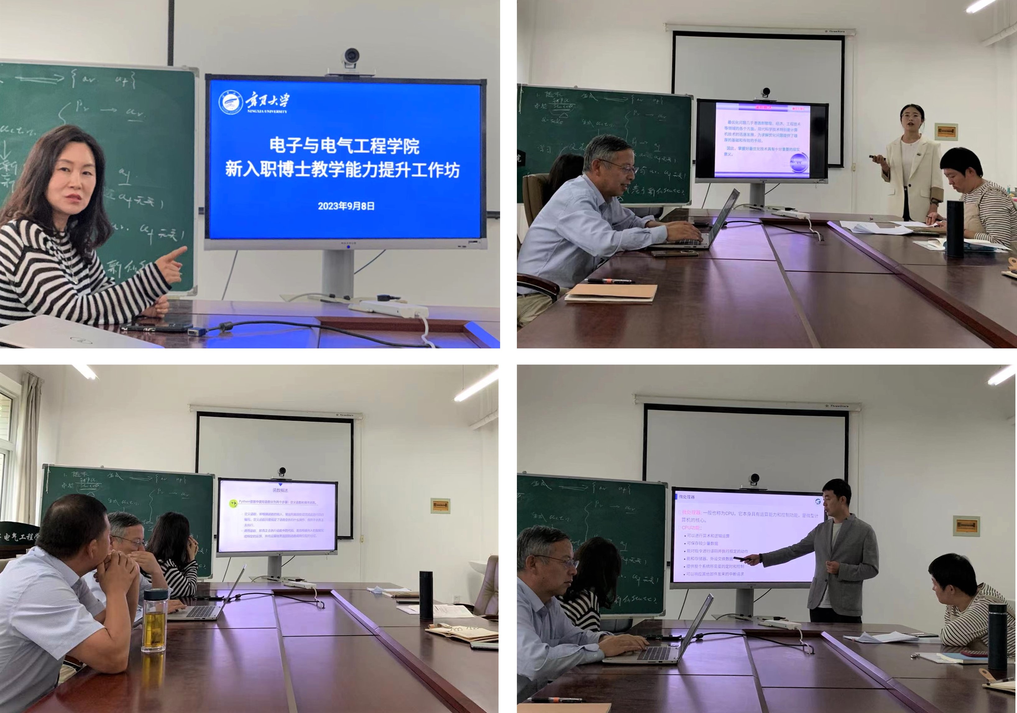 【beat365唯一官方网站新闻中心讯 电子与电气工程学院】为进一步帮助青年教师树立先进教育教学理念,掌握有效教学方法,夯实教学基本功,提升教育教学能力, 9月8日,电子与电气工程学院在怀远校区博远楼举办新入职博士教学能力提升工作坊,学院新入职教师进行教学试讲。工作坊由学院副院长李春树主持。
