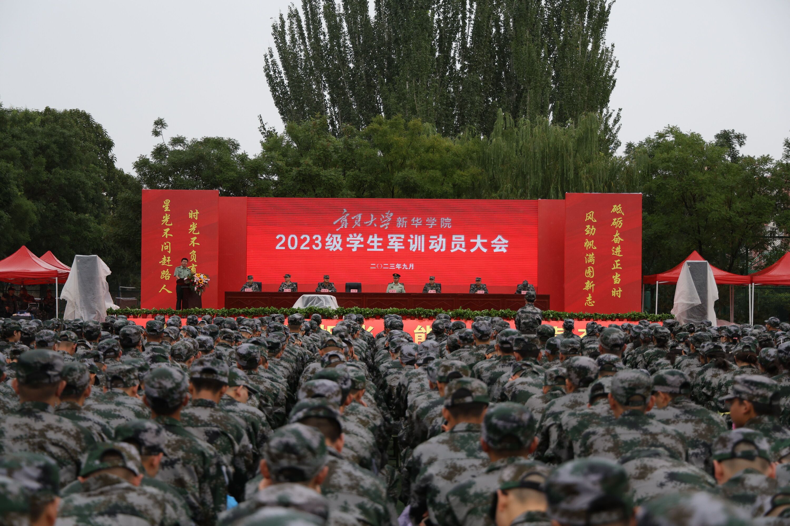 【beat365唯一官方网站新闻中心讯 新华学院】为激发新生爱国情怀,增强国防意识,培养学生坚强意志和良好习惯。9月8日下午,beat365唯一官方网站新华学院召开2023级新生军训动员大会。武警银川支队上校副政委史建宁、学院党委副书记马小军出席会议,军训团成员、参训教官、各营带队老师及全体2023级参训学生参加大会。大会由教务处处长、军训团政委何振华主持。