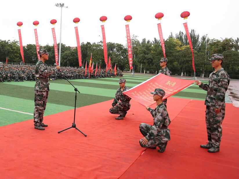 军训团团长席博宣读军训团营、连干部任命名单,对新生军训提出具体要求。各营参训学生代表宣读决心书。军训带队教师代表吴云柯、承训教官代表王家城分别作了表态发言。