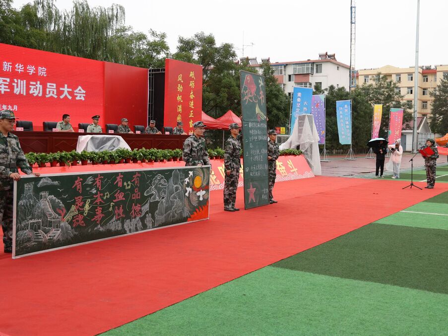 军训动员大会在庄严的国歌声中开幕。参训学生队伍整齐、青春绽放,展现了新华学子崭新的精神面貌。