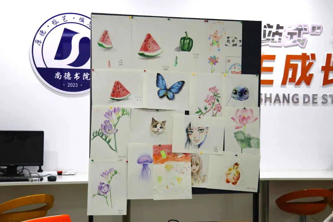 教学与创作环节结束后,同学们展示了自己的作品。小教师对学员们的作品进行了专业评析,选出五个优秀作品以兹鼓励。获评优秀画作的学员们分享了感悟。
