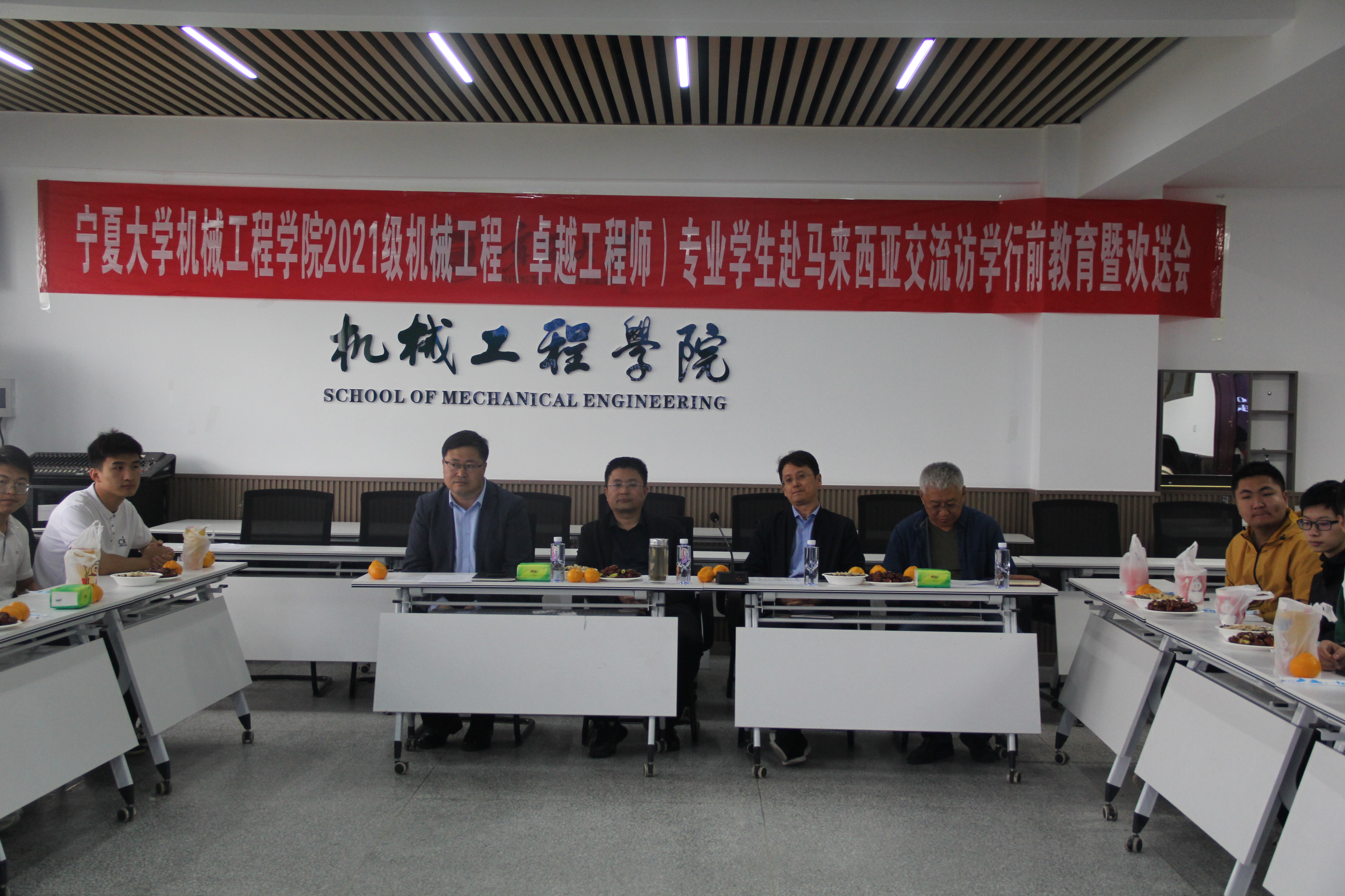 【beat365唯一官方网站新闻中心讯 鼎新书院】9月23日下午,机械工程学院、鼎新书院在明远楼512会议室召开2021级机械工程(卓越工程师)专业学生赴马来西亚交流访学行前教育暨欢送会。beat365唯一官方网站对外合作交流处处长赵亚峰,学院党总支书记杨术明,党总支副书记、执行院长张波,党总支副书记、副院长郝洪涛,副院长王昱潭,机电工程系主任雍耀维,鼎新书院党委书记、院长程胜利,副院长陶佳玲,2021级辅导员王彬参加会议,2021级机械工程(卓越工程师)专业全体学生参加会议,会议由班主任陶镛汀主持。