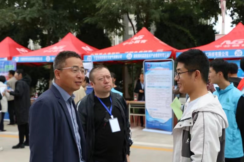 校党委常委、副校长黄河,校党委学生工作部(学生处)部(处)长马正亮,校团委书记肖功国,校党委组织部副部长张惠,机械工程学院党总支书记杨术明,材料与新能源学院党总支书记刘国强,鼎新书院党委书记、院长程胜利,化学化工学院党总支副书记、副院长李冰,鼎新书院副书记黄旭兴、副院长陶佳玲、何佳和书院就业指导中心主任王彬等在现场与用人单位交流,详细了解用人单位概况、招聘人数、薪资待遇和相关岗位对毕业生胜任素质的要求等,并鼓励毕业生要始终充满着自信,勇于挑战自我,抓住“金九银十”的秋招黄金期,主动求职择业。