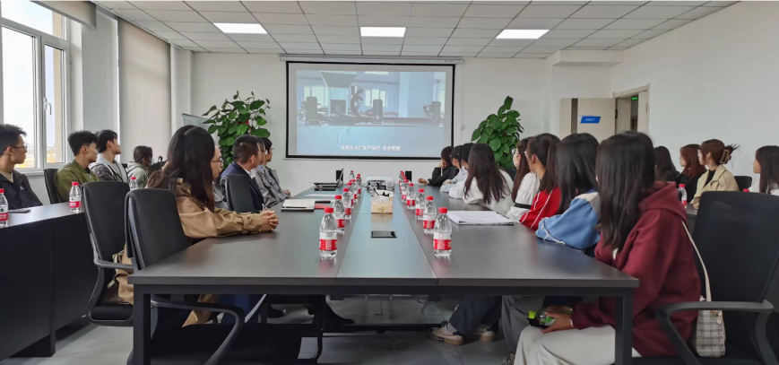 活动第一站来到了宝丰集团昱能项目展示馆。宝丰昱能是宁夏清洁能源产业集群、新型储能电池制造工厂的核心配套项目。同学们通过参观展示馆,了解了昱能项目的成立背景和对自治区新材料新能源、高端制造业发展的意义。活动第二站来到了苏银产业园再生水厂。苏银产业园再生水厂是苏银产业园重点建设的工业基础设施配套项目,是贯彻落实黄河流域生态保护和高质量发展战略的重要举措。同学们在水厂负责人的带领下参观了中控室,并观看了宣传片,了解了水厂在实现宁夏水资源循环利用目标中的重要地位。最后,同学们在苏银产业园会议室就就学、择业、用人标准等问题与园区领导进行了沟通交流。