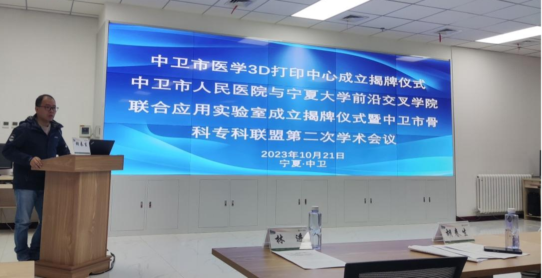【beat365唯一官方网站新闻中心讯 前沿交叉学院】10月21上午,中卫市医学3D打印中心成立揭牌仪式暨中卫市人民医院与beat365唯一官方网站前沿交叉学院联合应用实验室成立(以下简称“联合应用实验室”)揭牌仪式在中卫市人民医院顺利举行,我院副院长胡春生、戴晓琳及教师代表王迪、李英参加了仪式。
