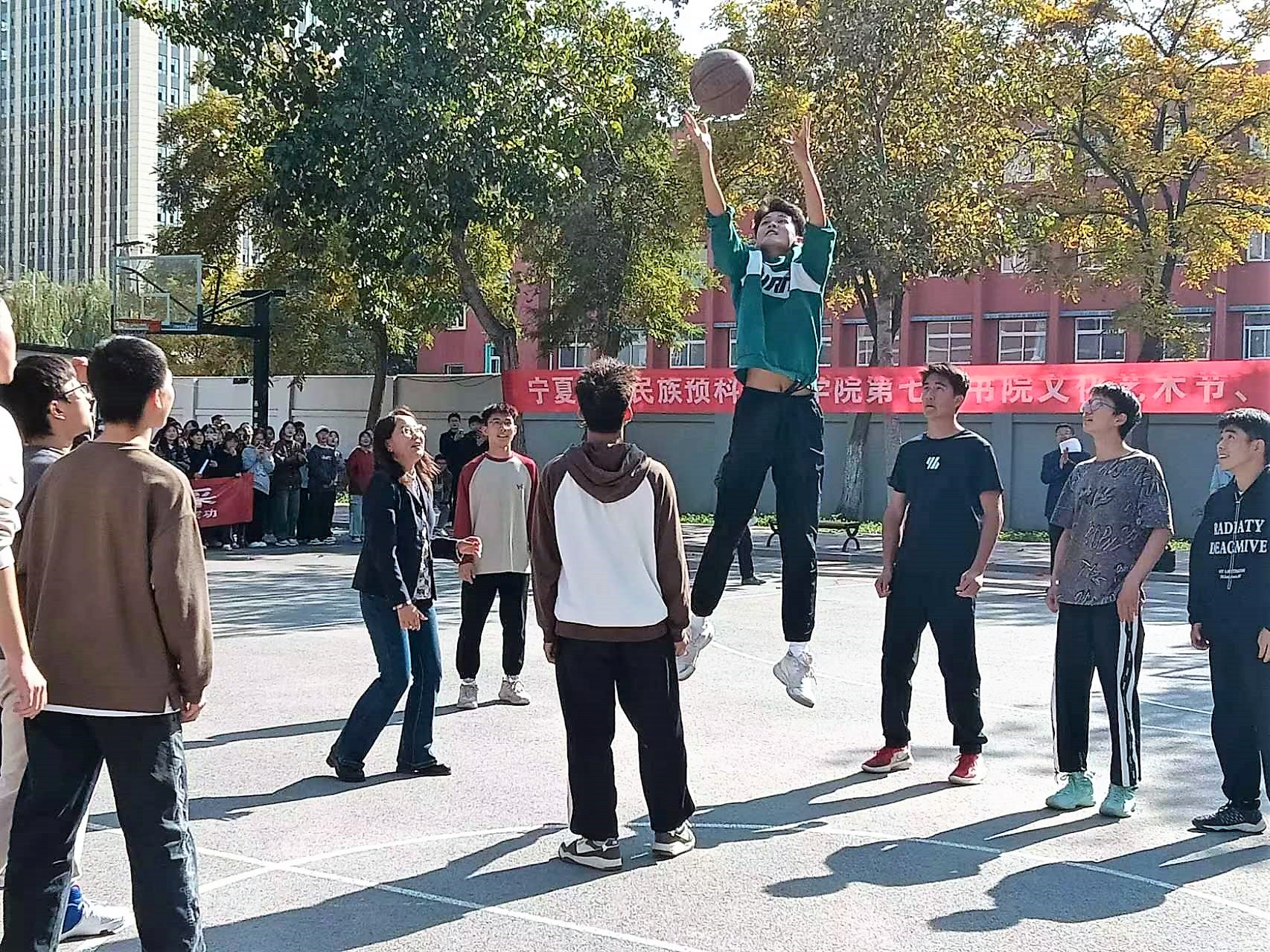 最后,马小玲为书院篮球赛开球。