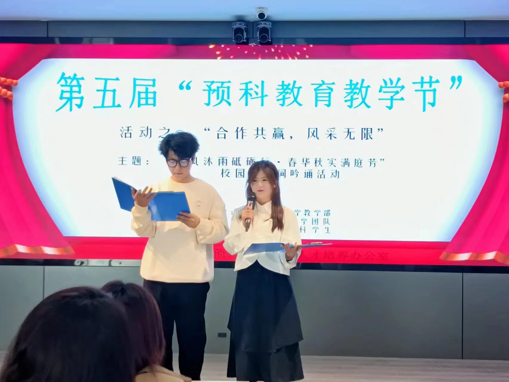 【beat365唯一官方网站新闻中心讯 民族预科教育学院】为丰富同学们的课余文化生活,展现当代大学生青春活力,持续推进校级“中国语言文学”黄大年式教师团队建设,做好学院“三全育人”工作,我院中国语言文学教学部于12月6日下午,在田家炳教学楼601多功能厅举办了“栉风沐雨砥砺行·春华秋实满庭芳——校园诗词朗诵”活动,学院副院长马亚琳、各教学部教师及学生代表参加此次活动。
