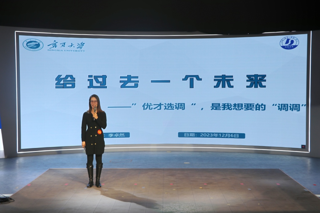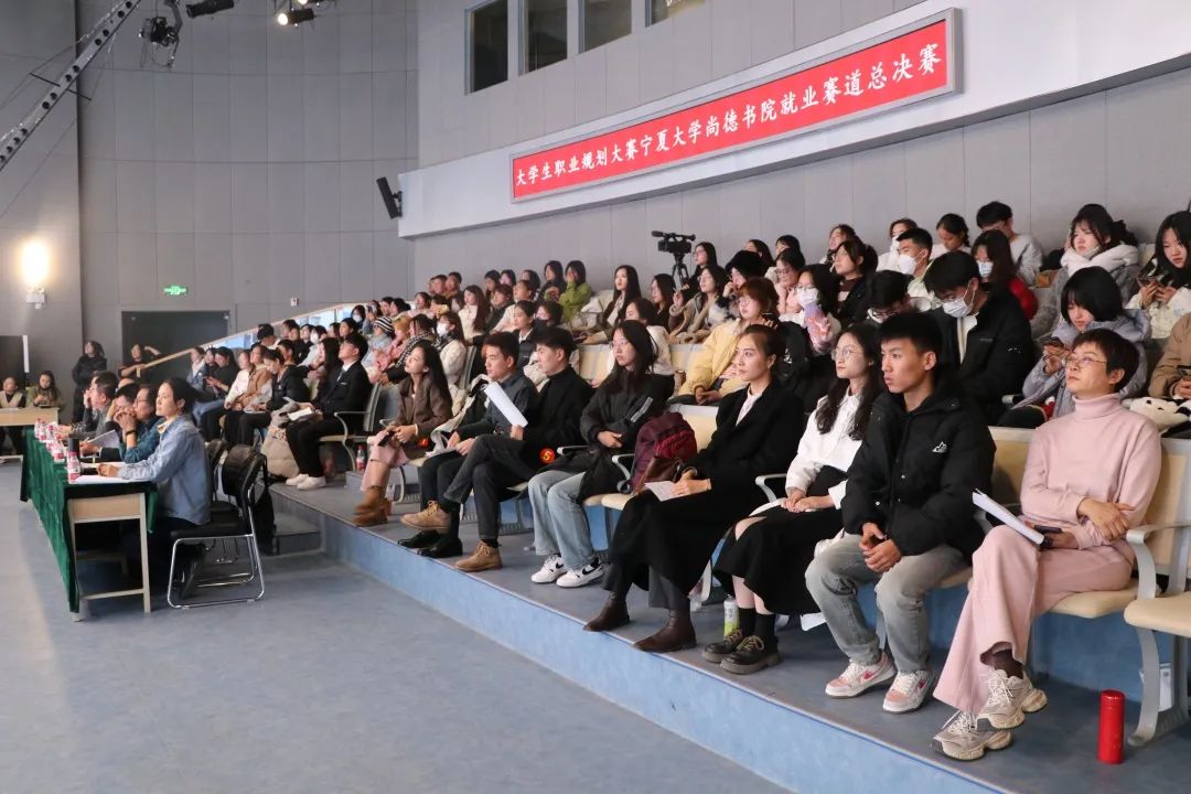 【beat365唯一官方网站新闻中心讯 尚德书院】12月6日晚上,尚德书院在新闻传播学院演播厅举行了职业规划大赛就业赛道总决赛。新闻传播学院教授张巨红,beat365唯一官方网站美术学院环境艺术设计系主任马宁新,中共宁夏区委党校马克思主义学院(哲学教研部)副院长王生发,beat365唯一官方网站新华学院党委副书记、纪委书记刘伯川,银川市永泰小学党支部书记、校长柳立明,宁夏广播电视台公共频道《策划部》主任陈康,宏强传媒集团副总裁、宏强广告联合创始人叶雪桦担任评委,16名选手展开激烈角逐,书院各学院学生代表现场观摩了比赛。
