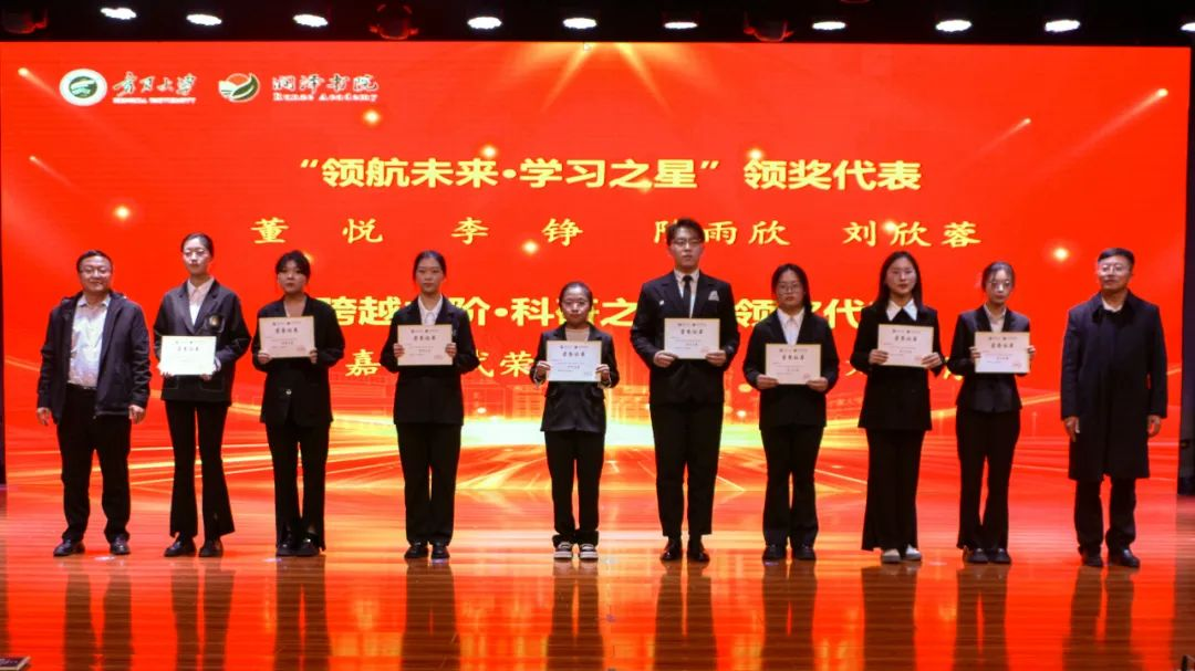 与会领导、老师为获“优秀党务工作者”“优秀共产党员”“学习强国之星”“优秀共青团干部”“优秀共青团员"“优秀新闻工作者”“优秀学生干部”“社区之星”“实践之星”“志愿服务之星”“运动之星”“学习之星”“科研之星”的同学颁发荣誉证书并表示祝贺。